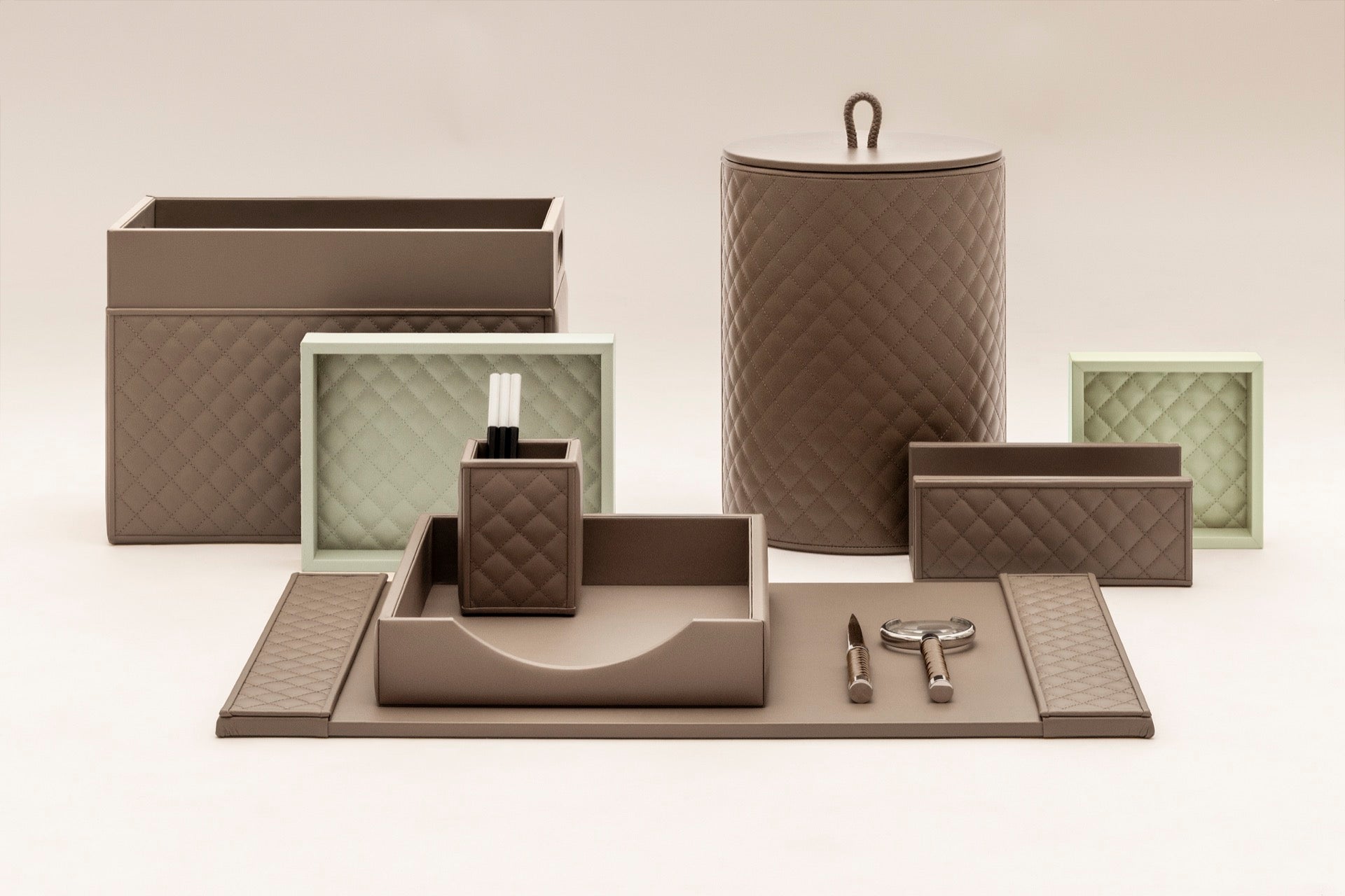 Manhattan Leather-Covered Bathroom Set | Giobagnara