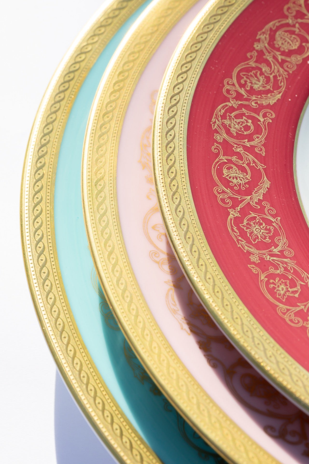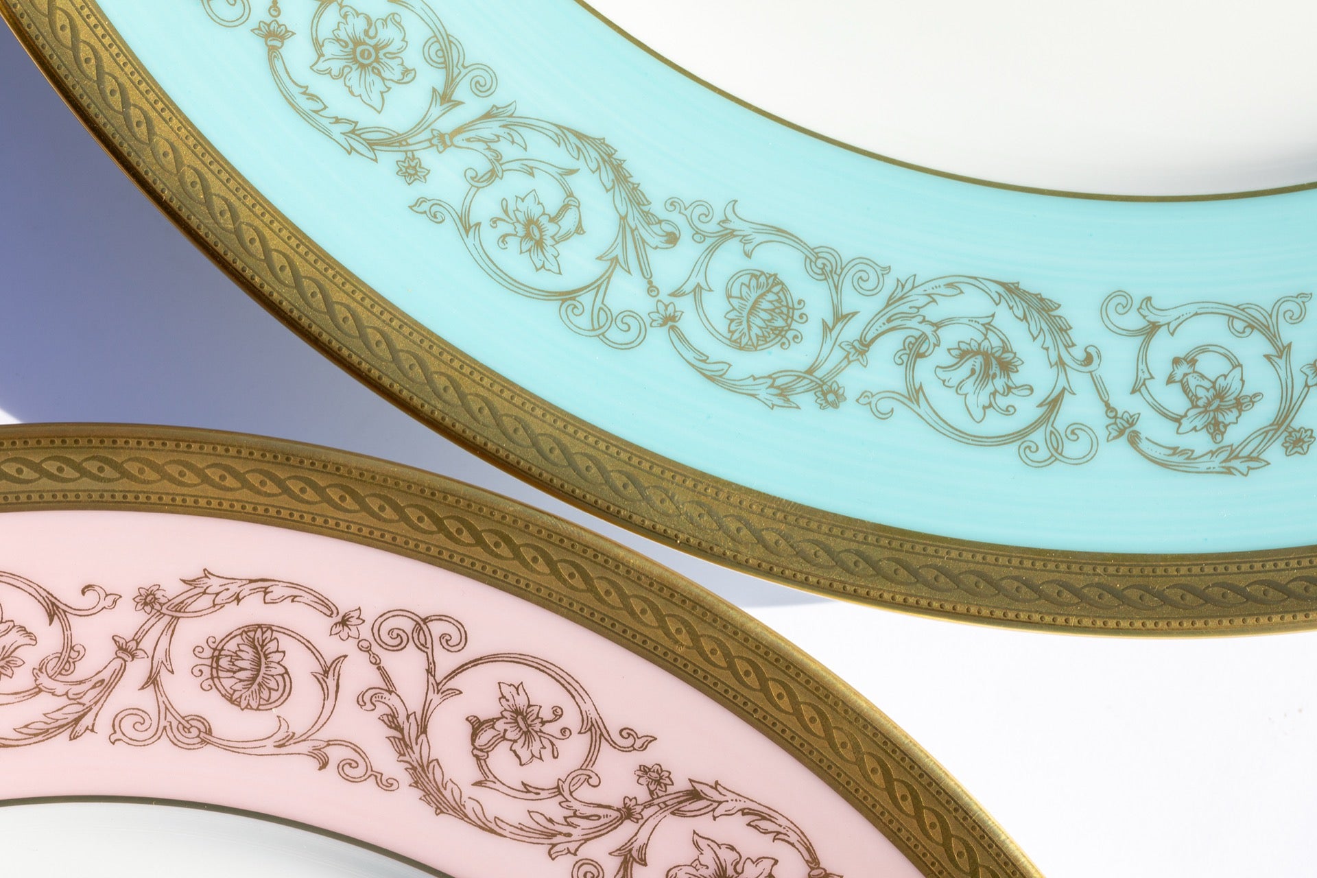 The Ambassade collection by Robert Haviland & C. Parlon is a testament to the maison’s multidimensional artistic savoir-faire. Distinguished by its richly colored wings—available in several vibrant shades—the pattern unites three exceptional decorative processes: a gold inlay framing the wing, an all-gold floral chromolithograph, and a hand-applied gilded border that enhances the inner rim. Together, these elements create a striking visual balance that celebrates both precision and artistry within fine Limoges porcelain.