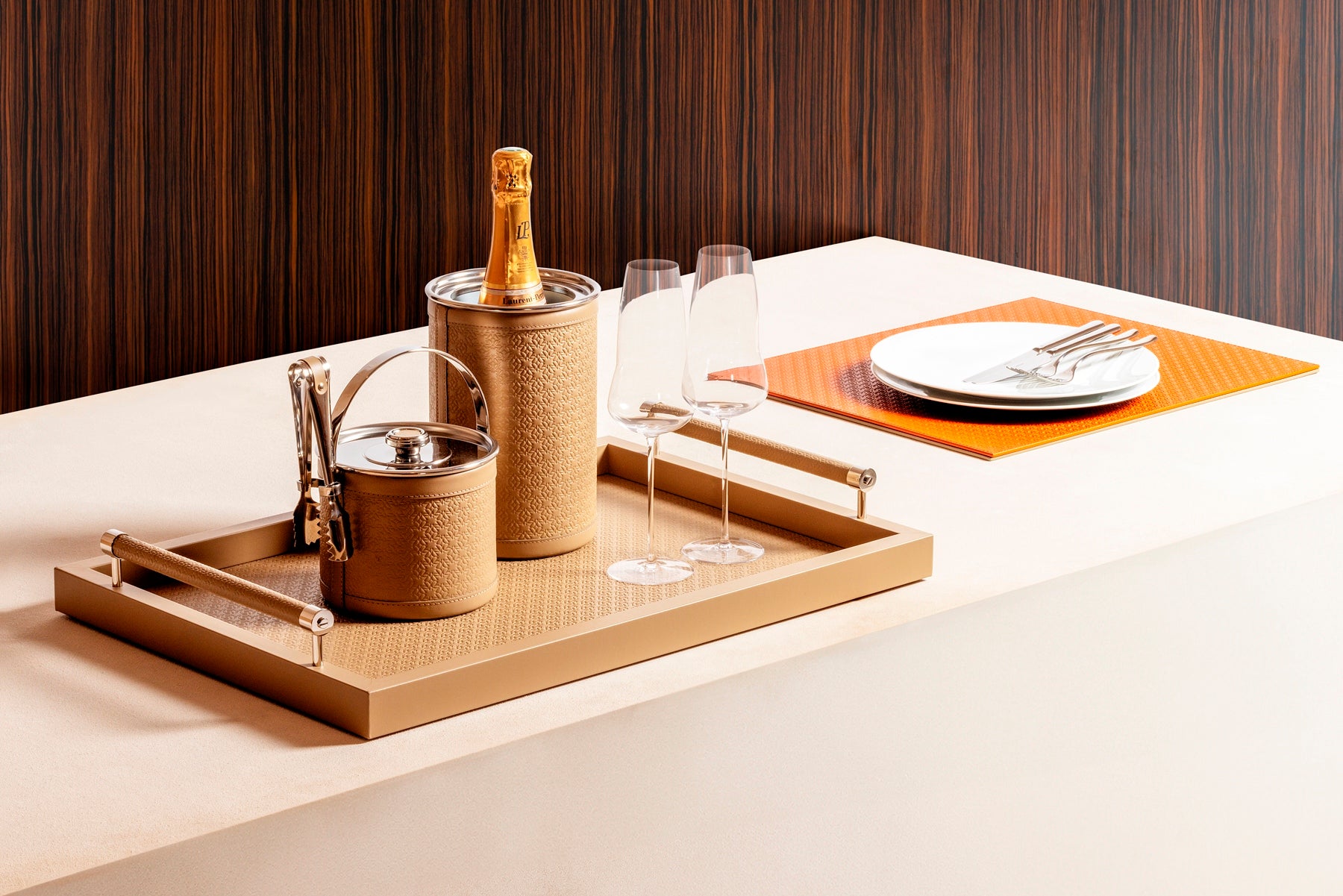The Monogram Desk Set by Giobagnara x Elie Saab combines luxurious craftsmanship...