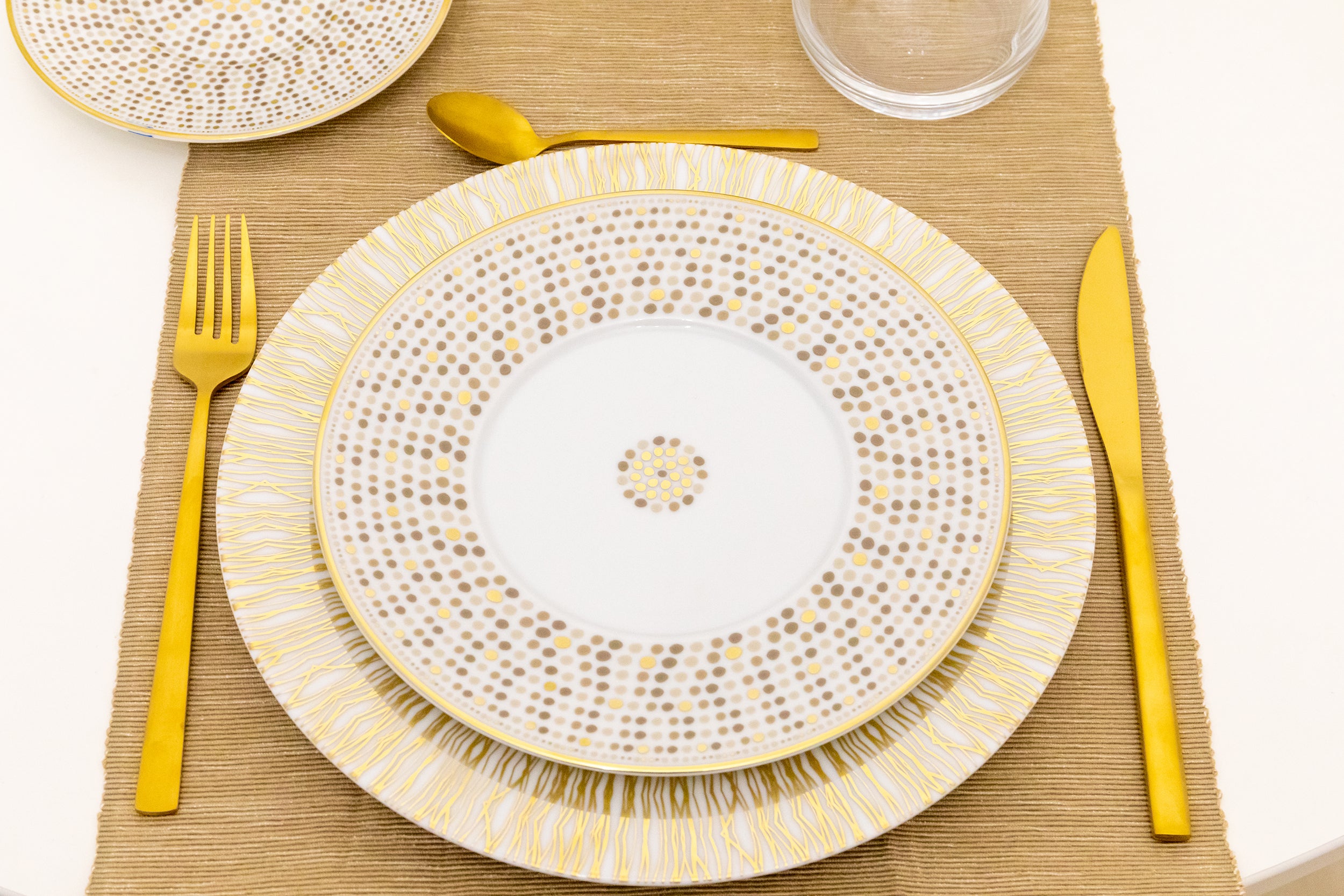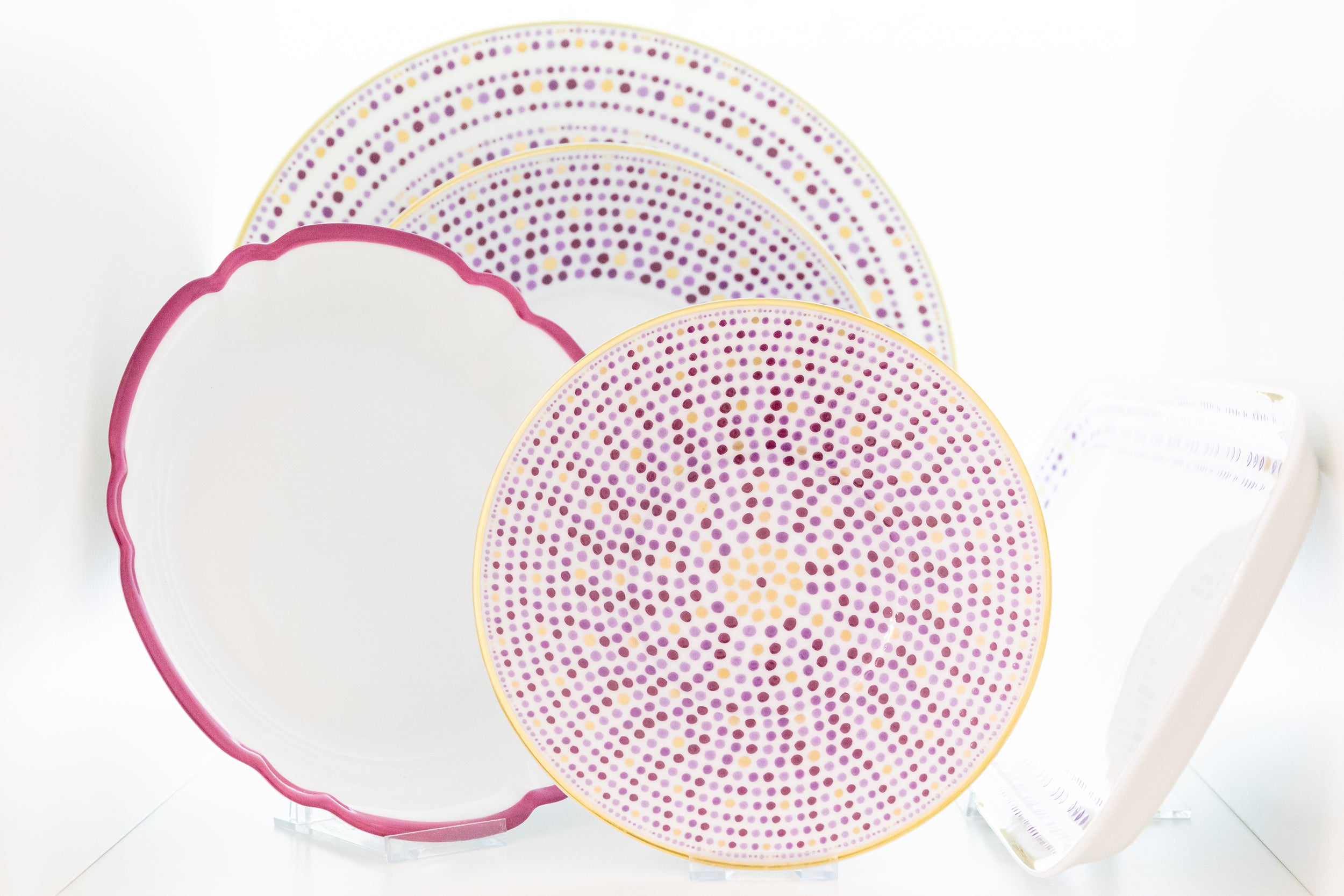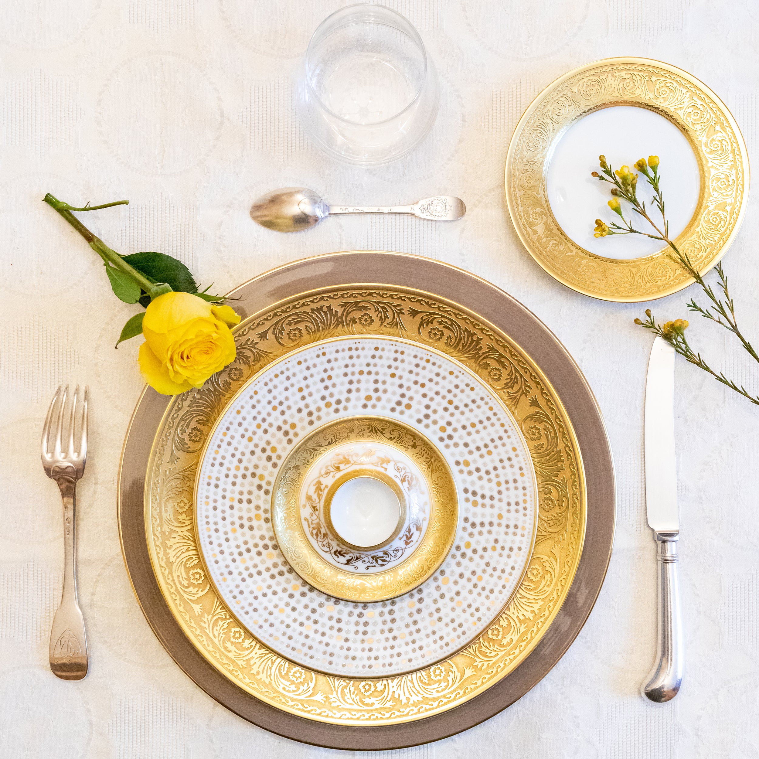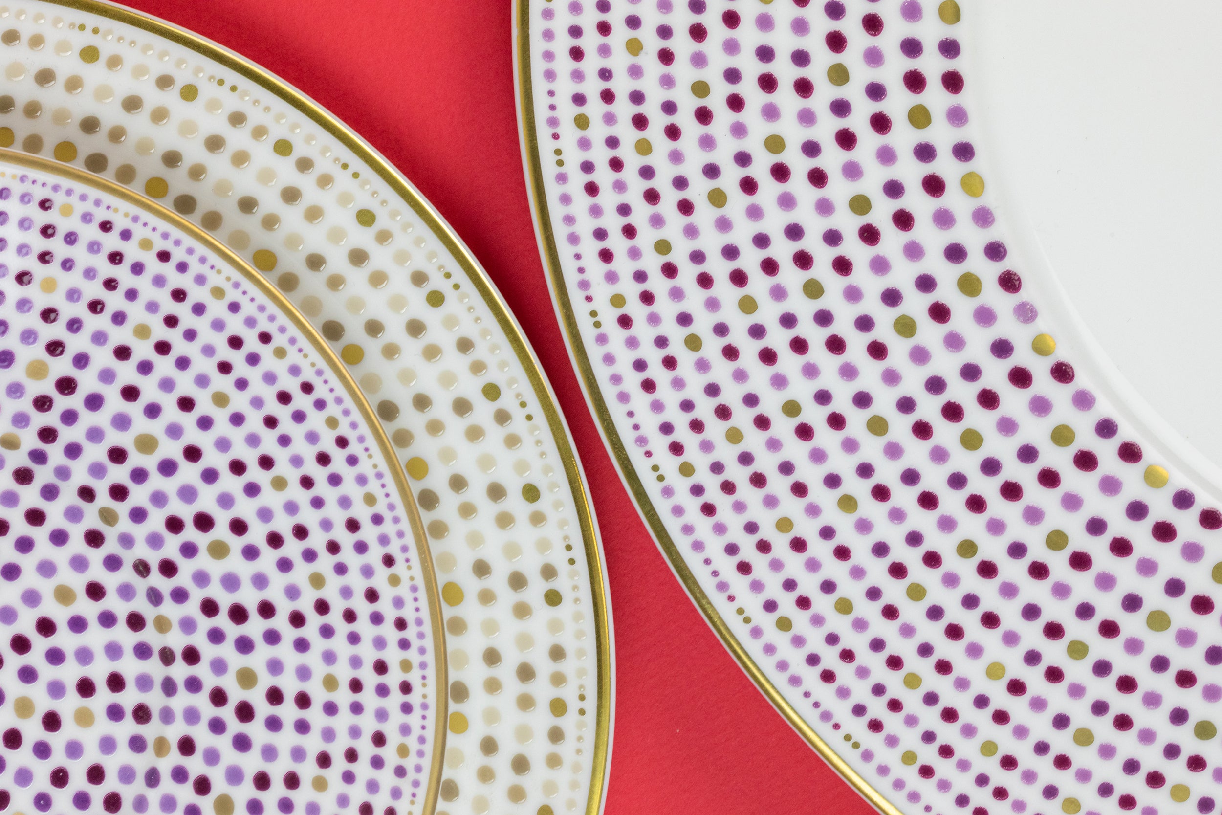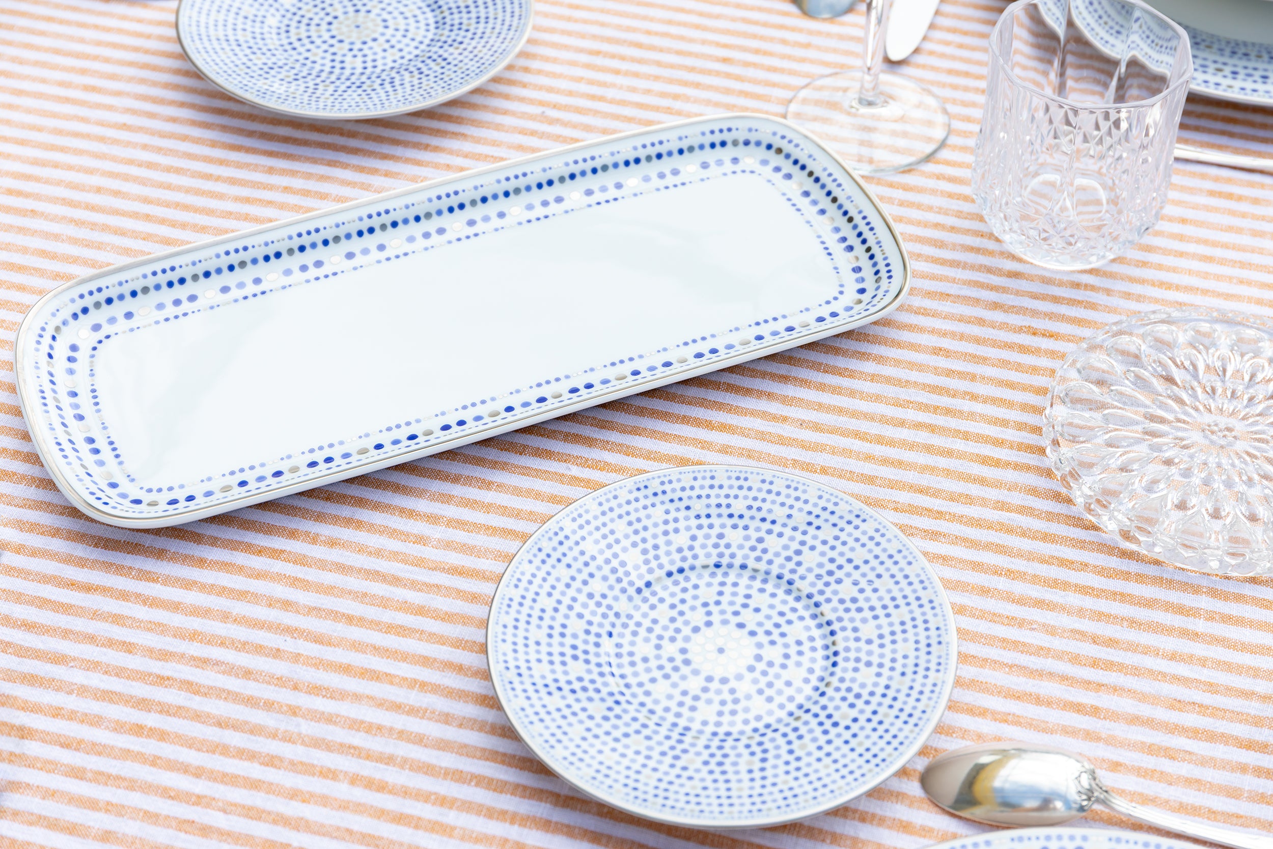 The Villa Toscana collection by Robert Haviland & C. Parlon, conceived by artist Stefany Bellamy, brings a breath of modern elegance to the table. This fresh summer décor features spirited dots in indigo, cassis, and mastic gracefully hand-applied onto fine Limoges porcelain, creating a strikingly graphic yet lighthearted pattern. Conceived to evoke the relaxed charm of Mediterranean villas, each piece bears the clarity and sophistication that define the maison’s artisan heritage.
