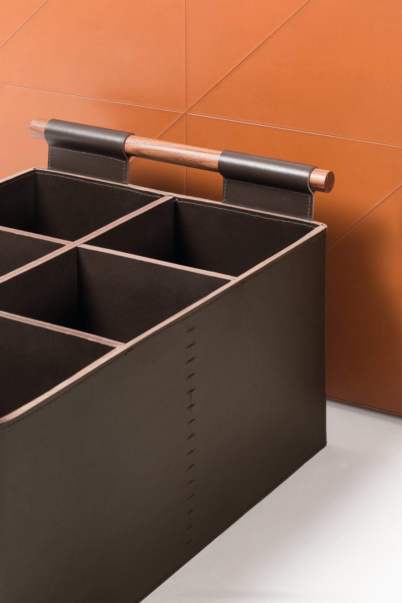 RABITTI 1969 – Aufbewahrungskorb aus Beta-Leder mit massiven Palisandergriffen und sechs Trennwänden