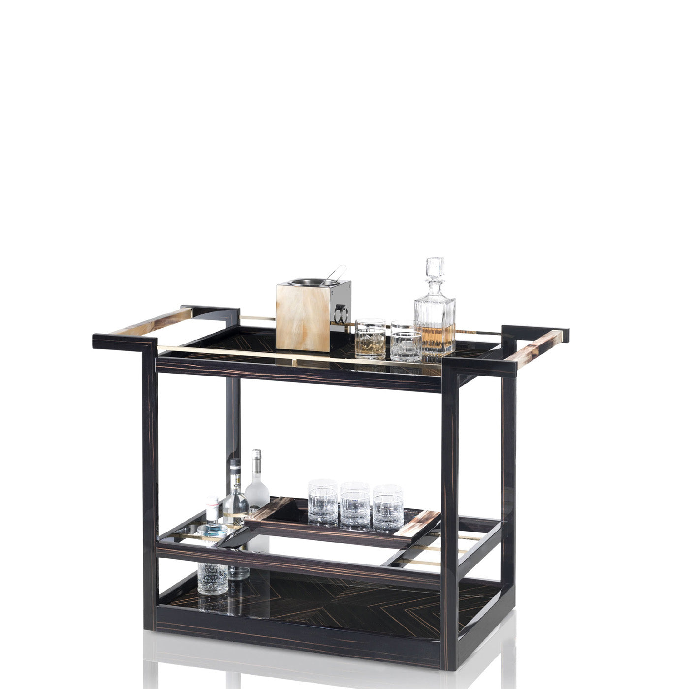 ARCAHORN – Elia-Servierwagen: Glänzendes Ebenholz, Horngriffe