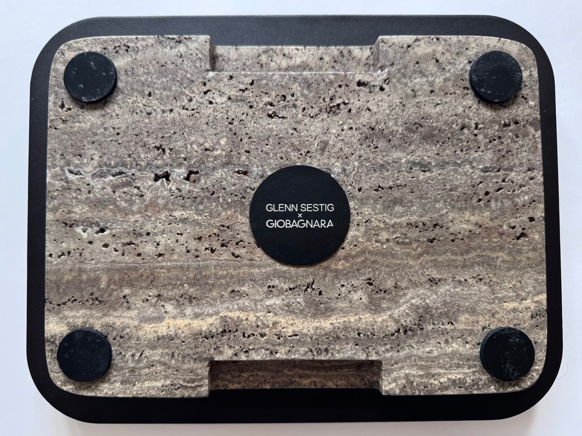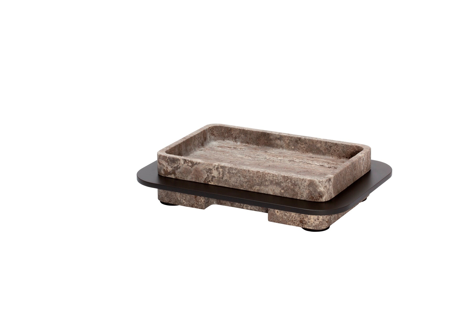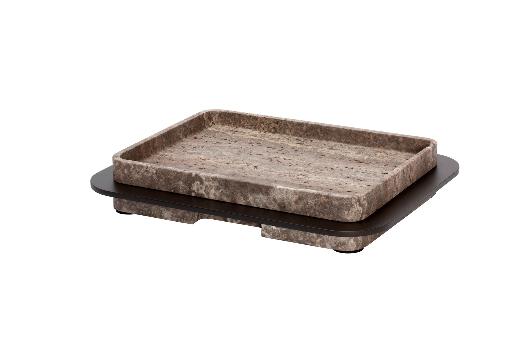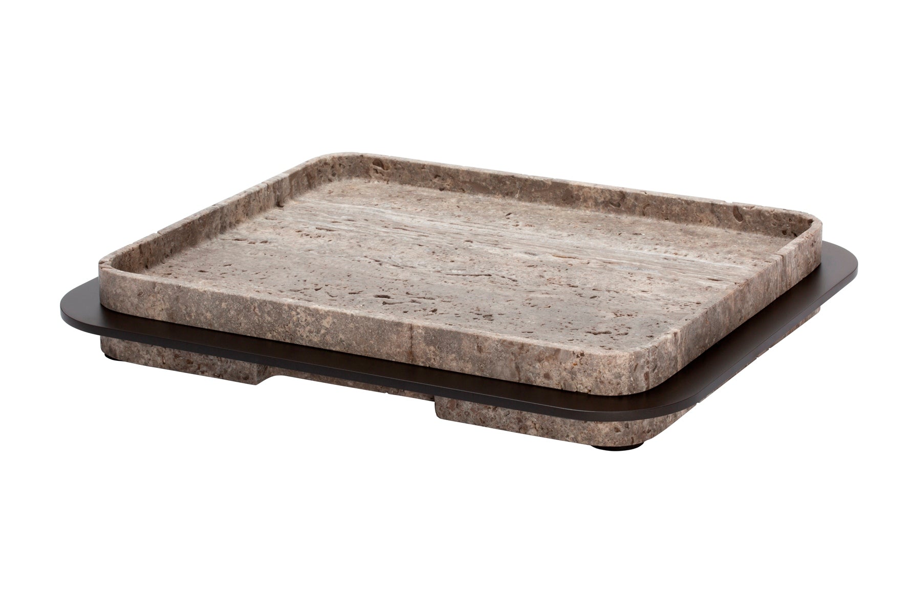 GIOBAGNARA – x Glenn Sestig Lloyd Tablett: Travertinmarmor mit brüniertem Bronzerahmen, rechteckig