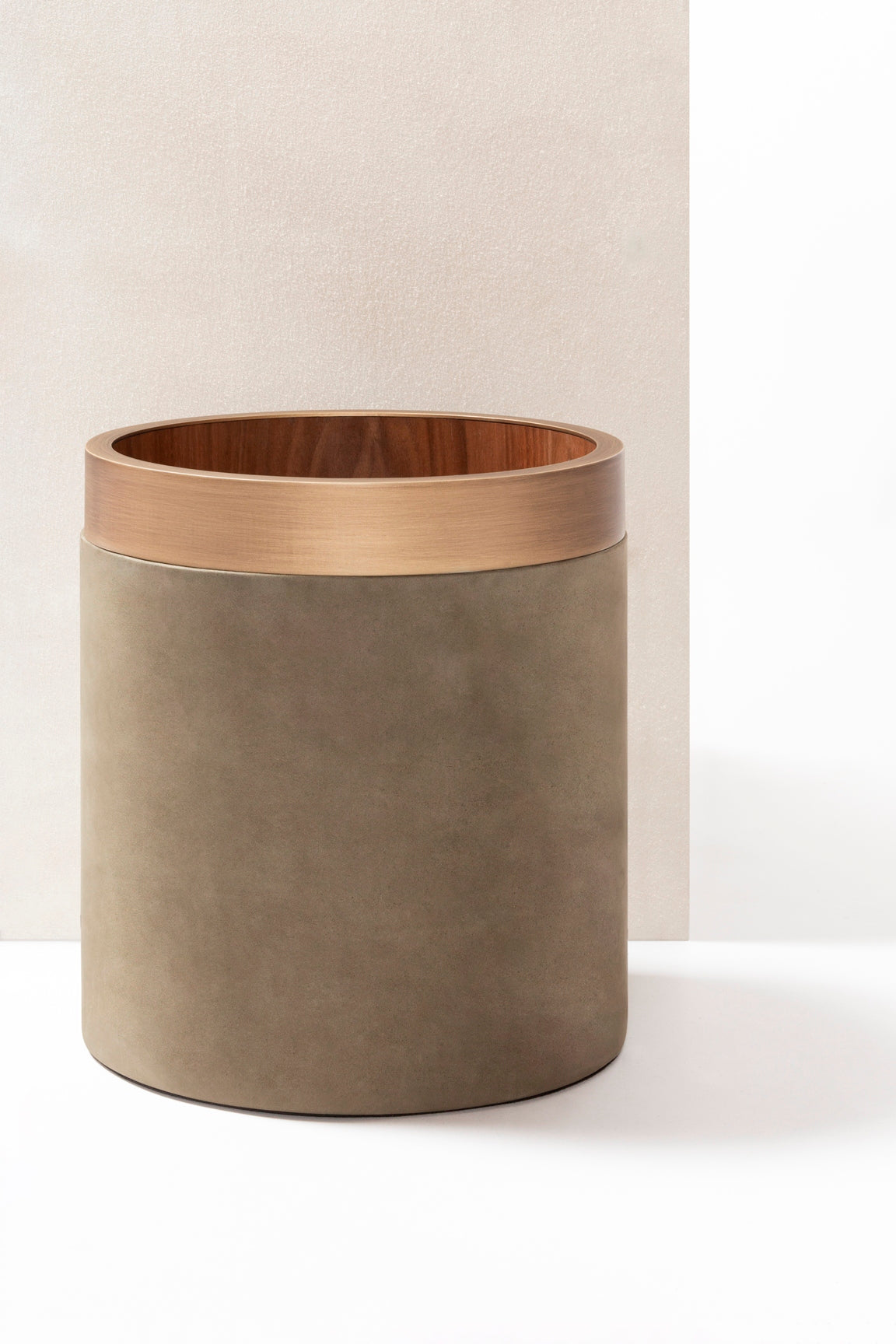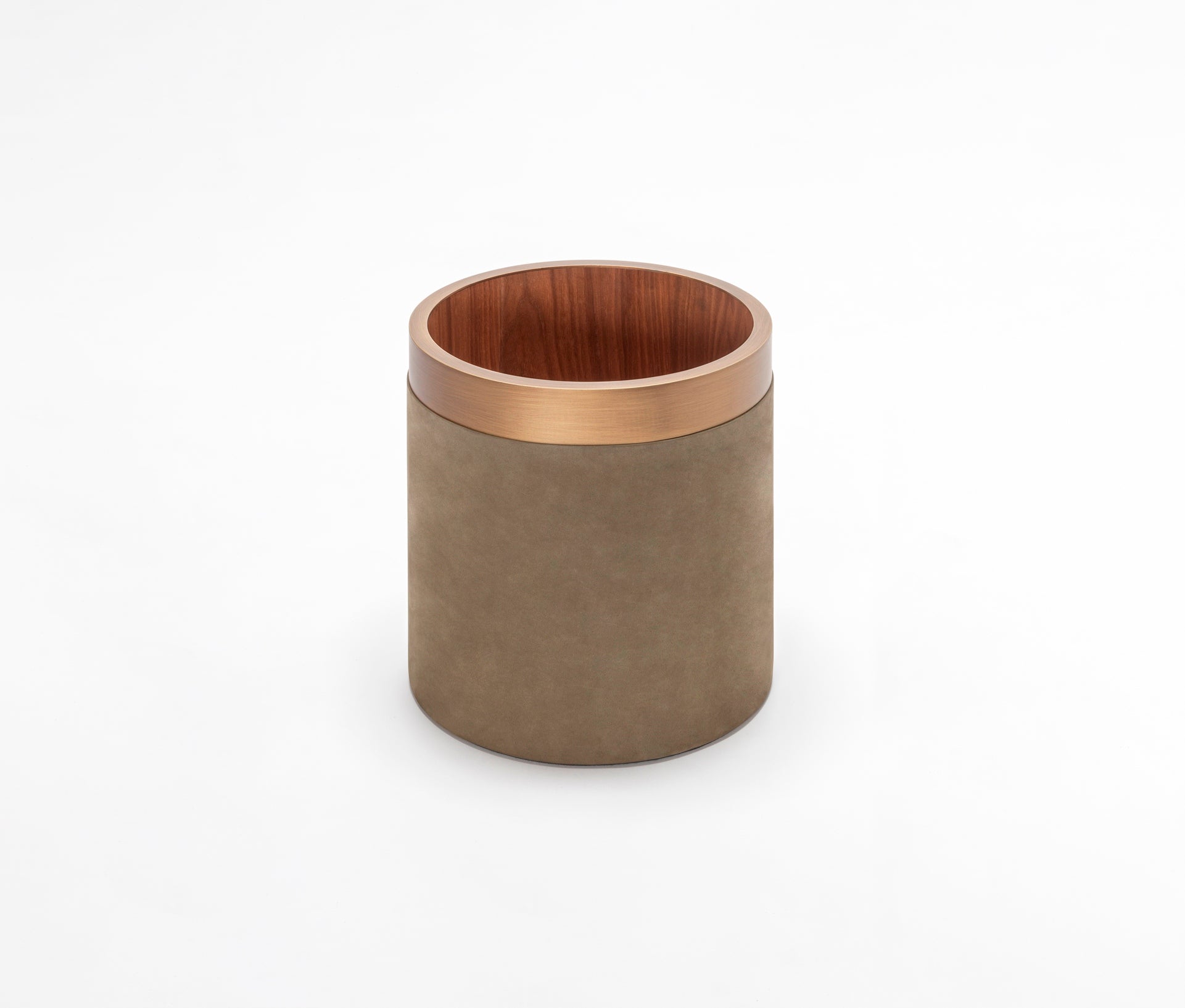 Poubelle ronde Dama en bois recouvert de cuir