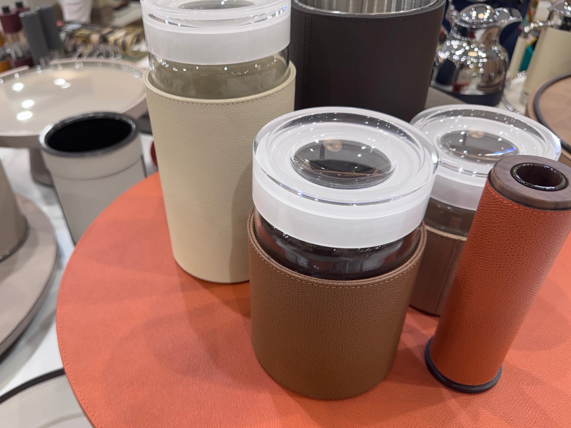 PIGMENT FRANCE BY GIOBAGNARA – Alsace Airtight Jar: Leather-Covered Glass Body with Two-Tone Plastic Lid, XL