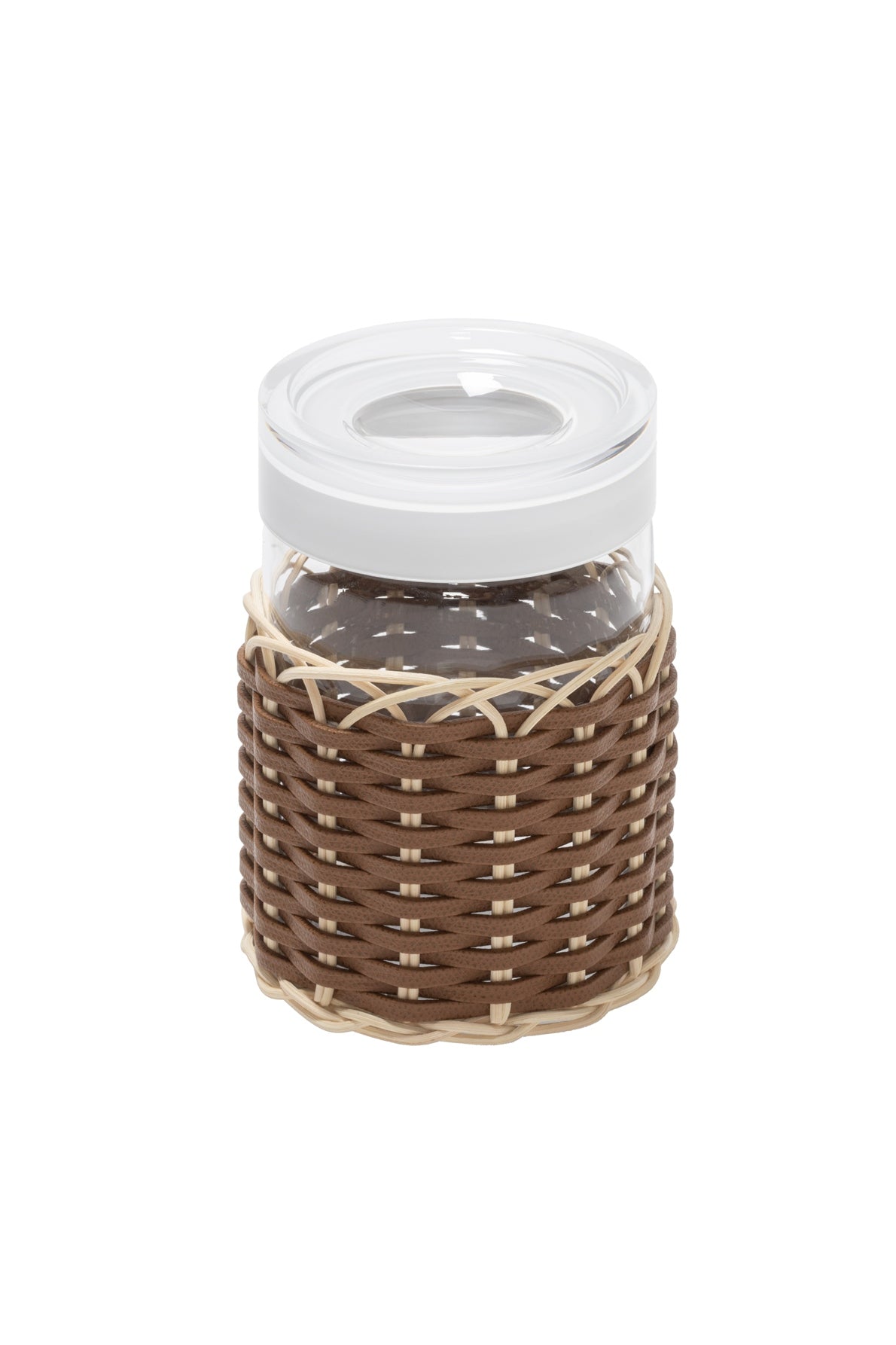 Elevate your kitchen decor with the exquisite Alsace Leather & Rattan Airtight Jar by Pigment France.