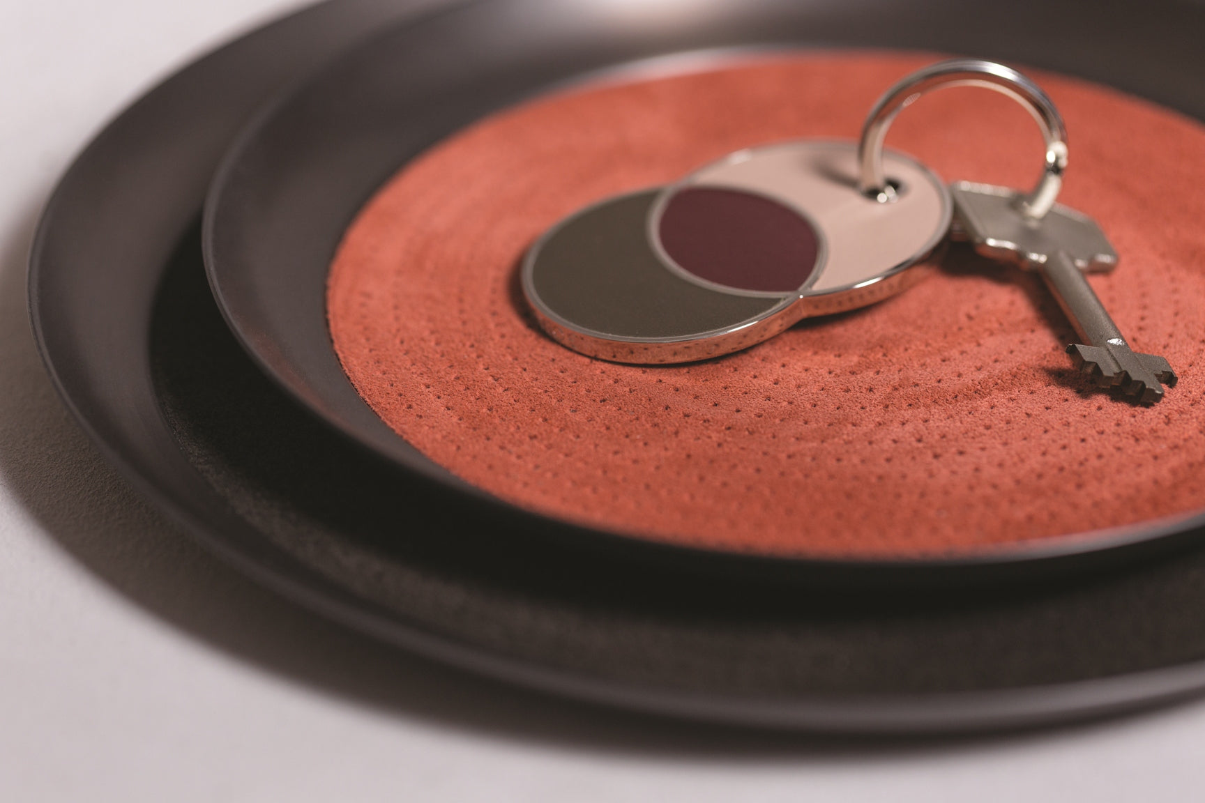 GIOBAGNARA – Basel Metal Valet Tray Round w Suede-Covered Inner Part L