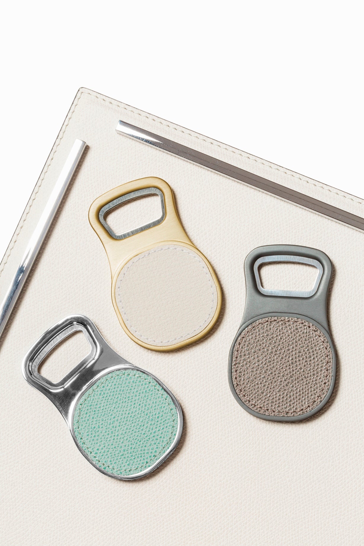 The Brooklyn Bottle Opener by Giobagnara redefines everyday functionality with its elegant design. Featuring a sturdy metal structure enhanced by fine leather inserts on both sides, this bottle opener combines durability and sophistication, making it a chic addition to any bar or kitchen.