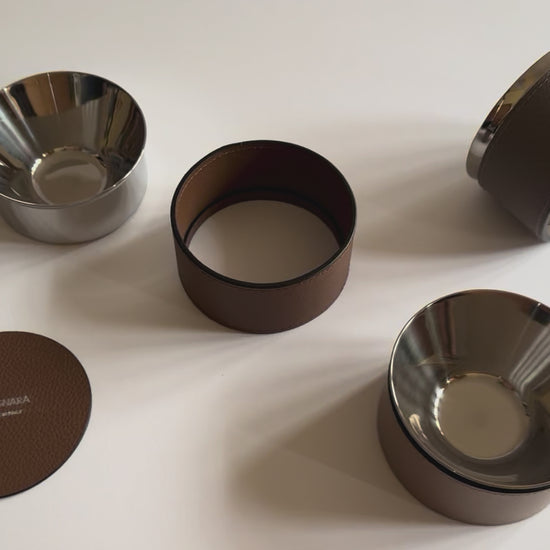 The Calypso Bowl by Giobagnara fuses contemporary materials and meticulous design. Its insulated, double-wall construction keeps contents at the ideal temperature, while the removable leather cover adds a tactile, luxurious element on the tabletop. Once the leather exterior is lifted away, the stainless-steel interior is dishwasher safe, ensuring both style and practicality.