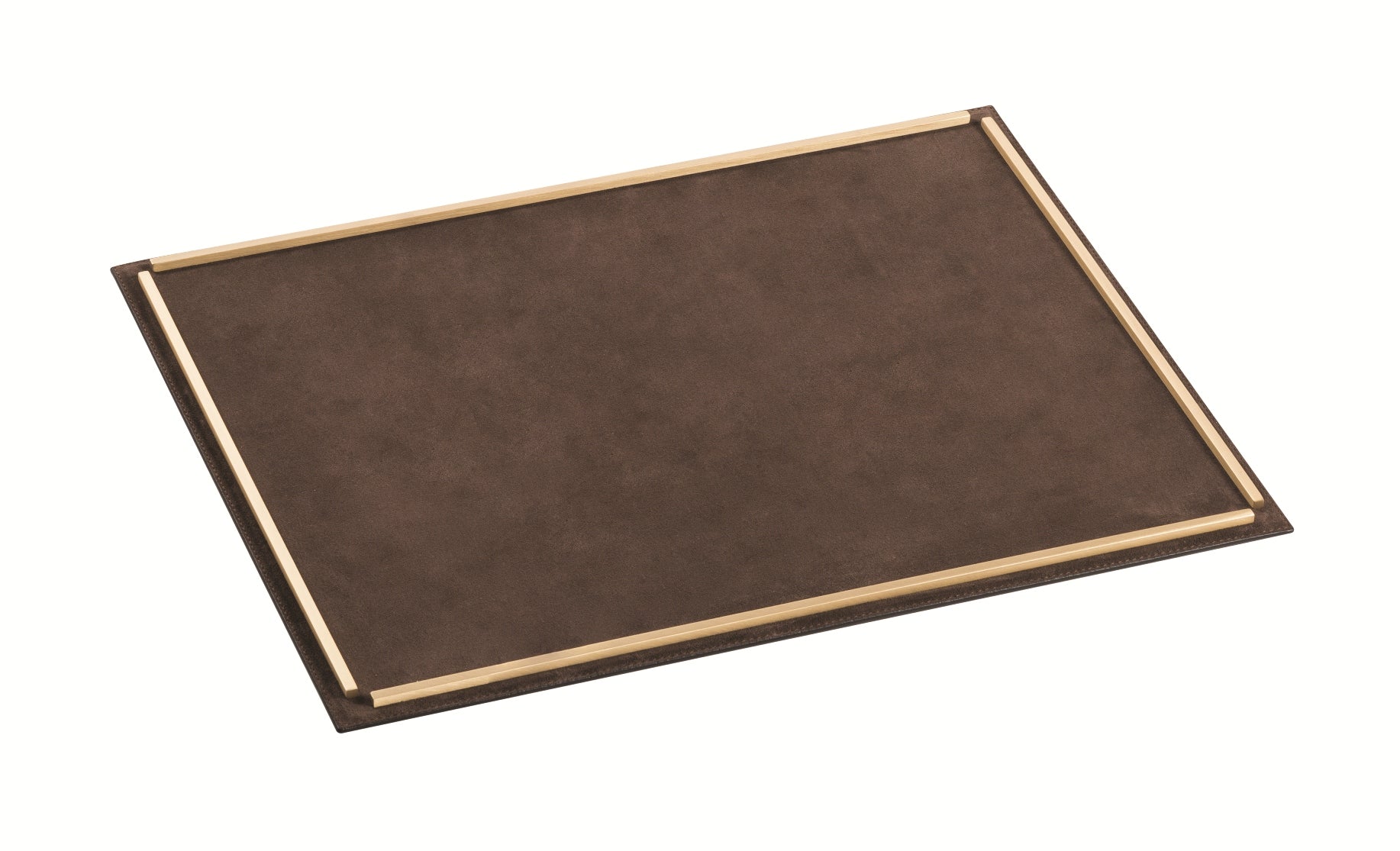 Campo Leather-Covered Tray with Metal Frame, Rectangular M, Brass