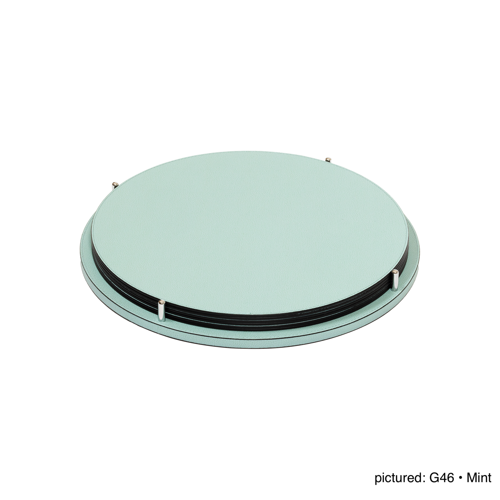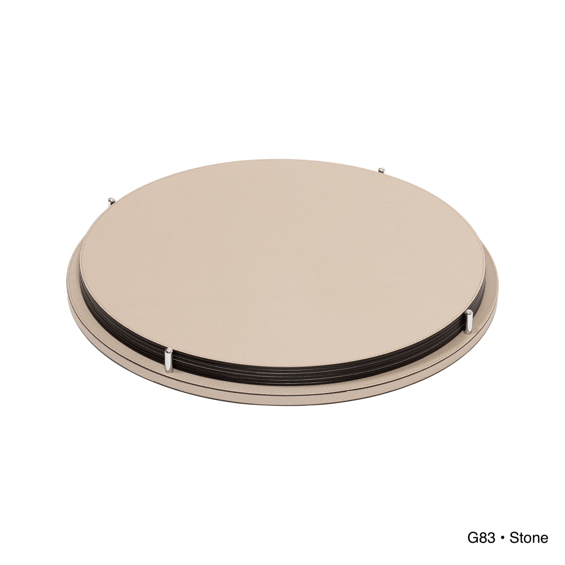 GIOBAGNARA – David Leather-Covered Placemat Holder, Round with 6 Placemats & Polished Metal Pins