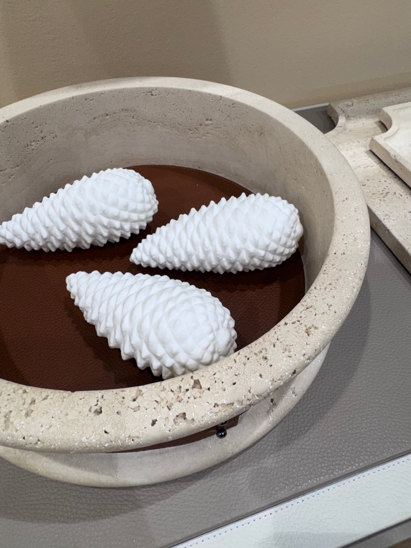 Ercolano Marble Trinket Bowl w Removable Leather Placemat High S