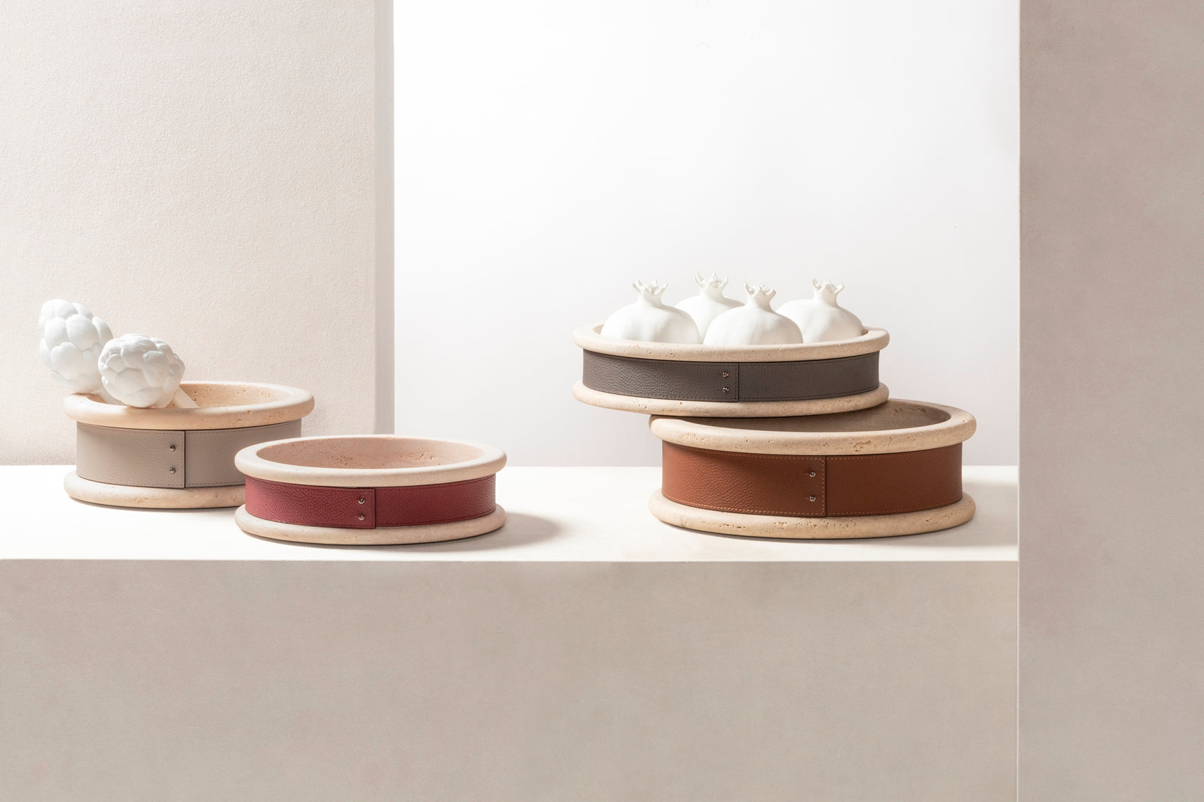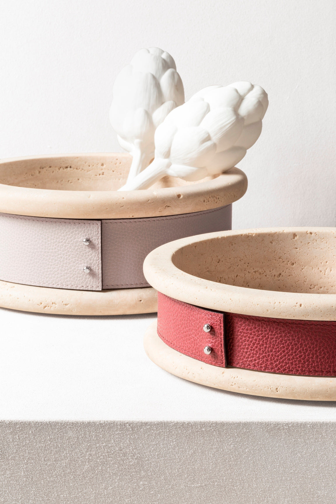 GIOBAGNARA – Ercolano Marble Trinket Bowl w Removable Leather Placemat High S