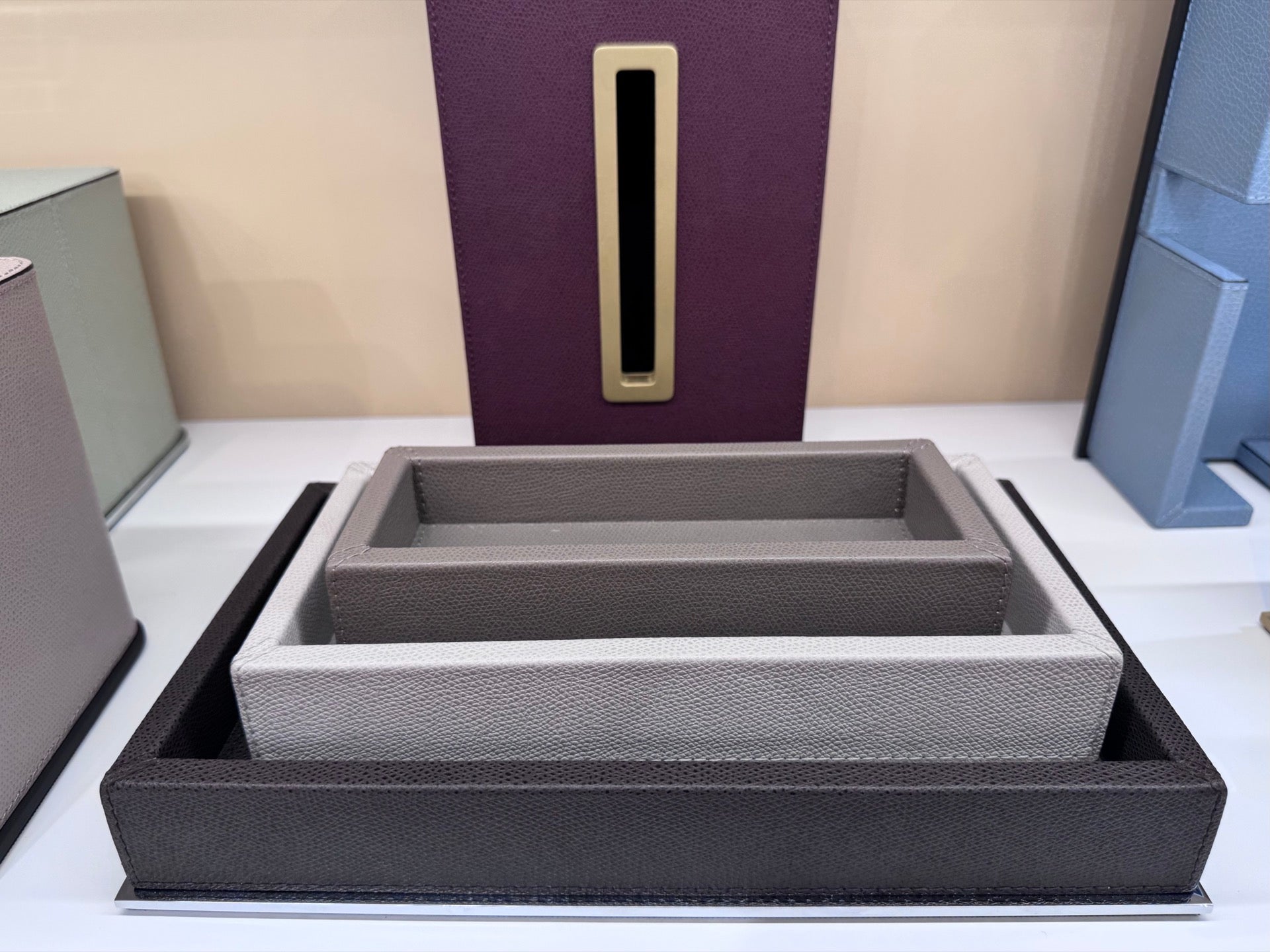collection: Firenze Leather-Covered Bathroom Set | Giobagnara • Firenze Leather-Covered Wood Desk Set With Metal Base | Giobagnara