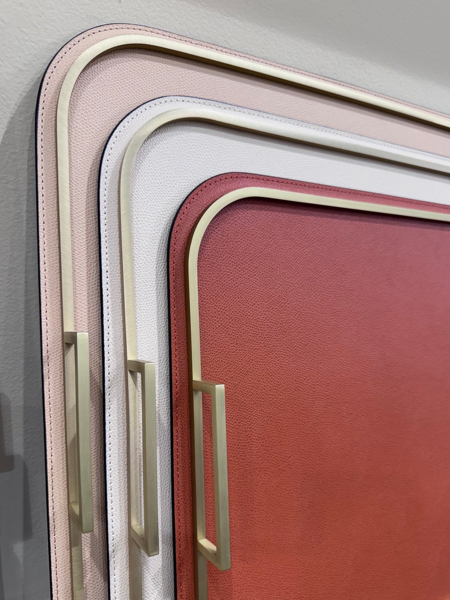 GIOBAGNARA – Bellini Rectangular Leather-Covered Metal Tray with Metal Frame and Handles S