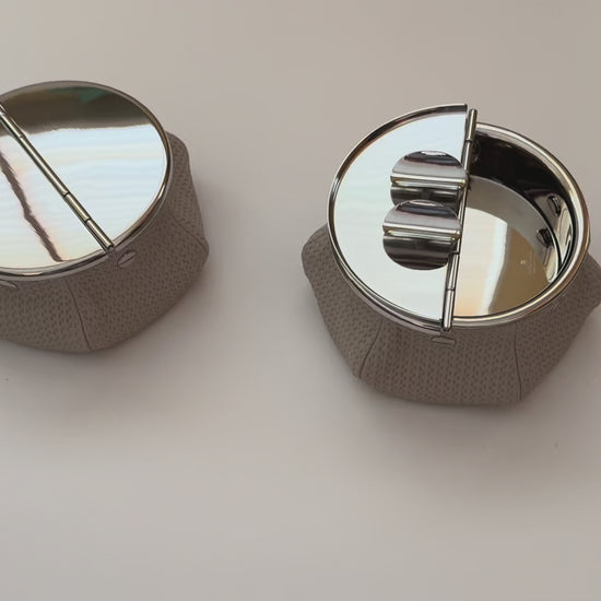 The Laurence Bean Bag Ashtray by Giobagnara combines functionality with luxury. Its windproof brass ashtray is complemented by a leather bag filled with metal microspheres, providing stability even in windy conditions. The palladium finish adds a touch of sophistication, making it a stylish accessory for jets and yachts. With a total weight of 1.2 kg, this ashtray offers both practicality and elegance.