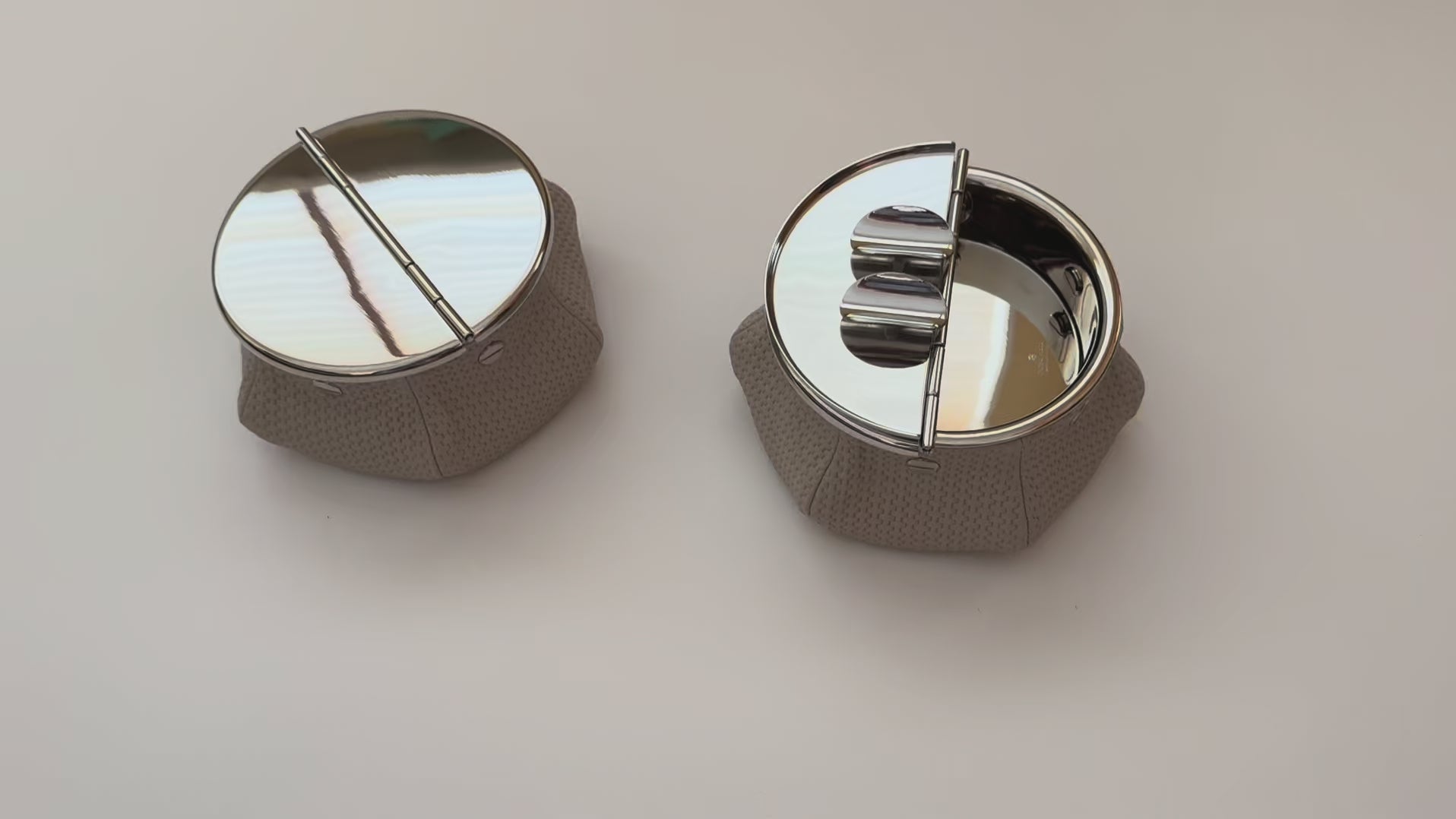 Material: Windproof brass ashtray with palladium finishing, fixed on a leather bag filled with 1 kg metal microspheres.