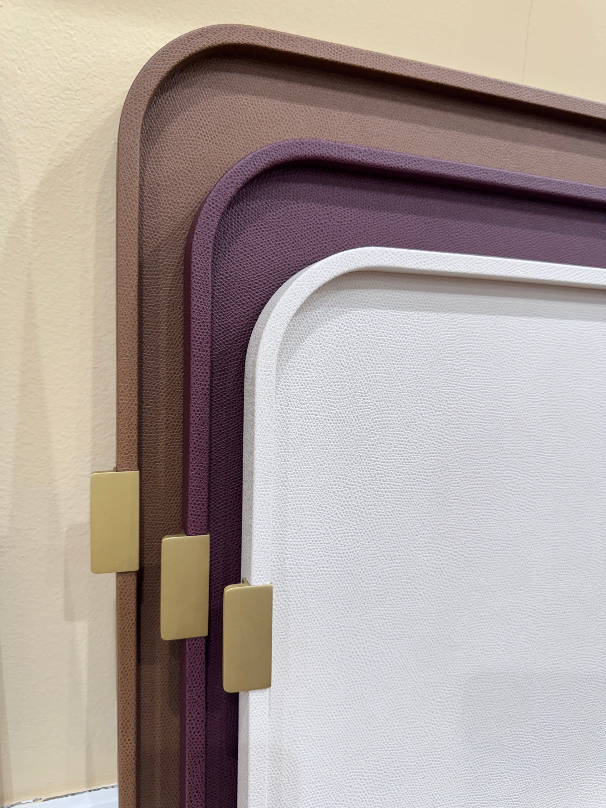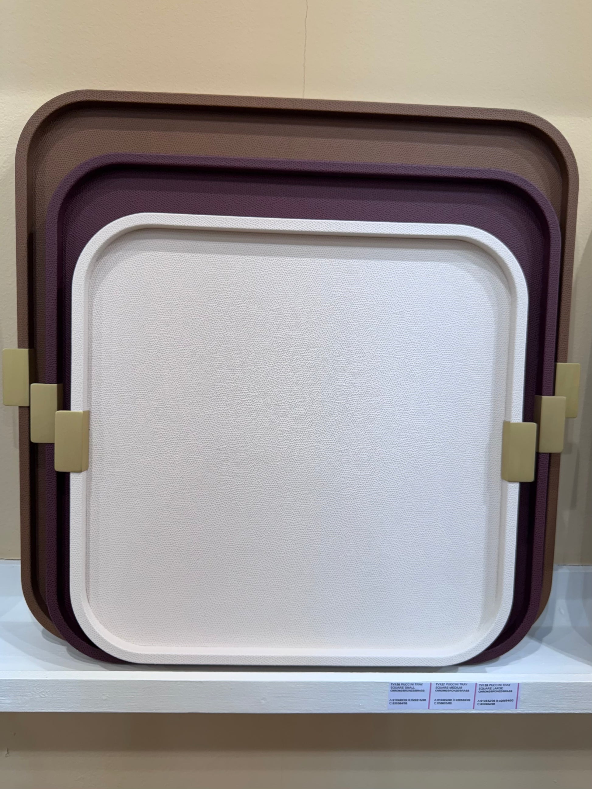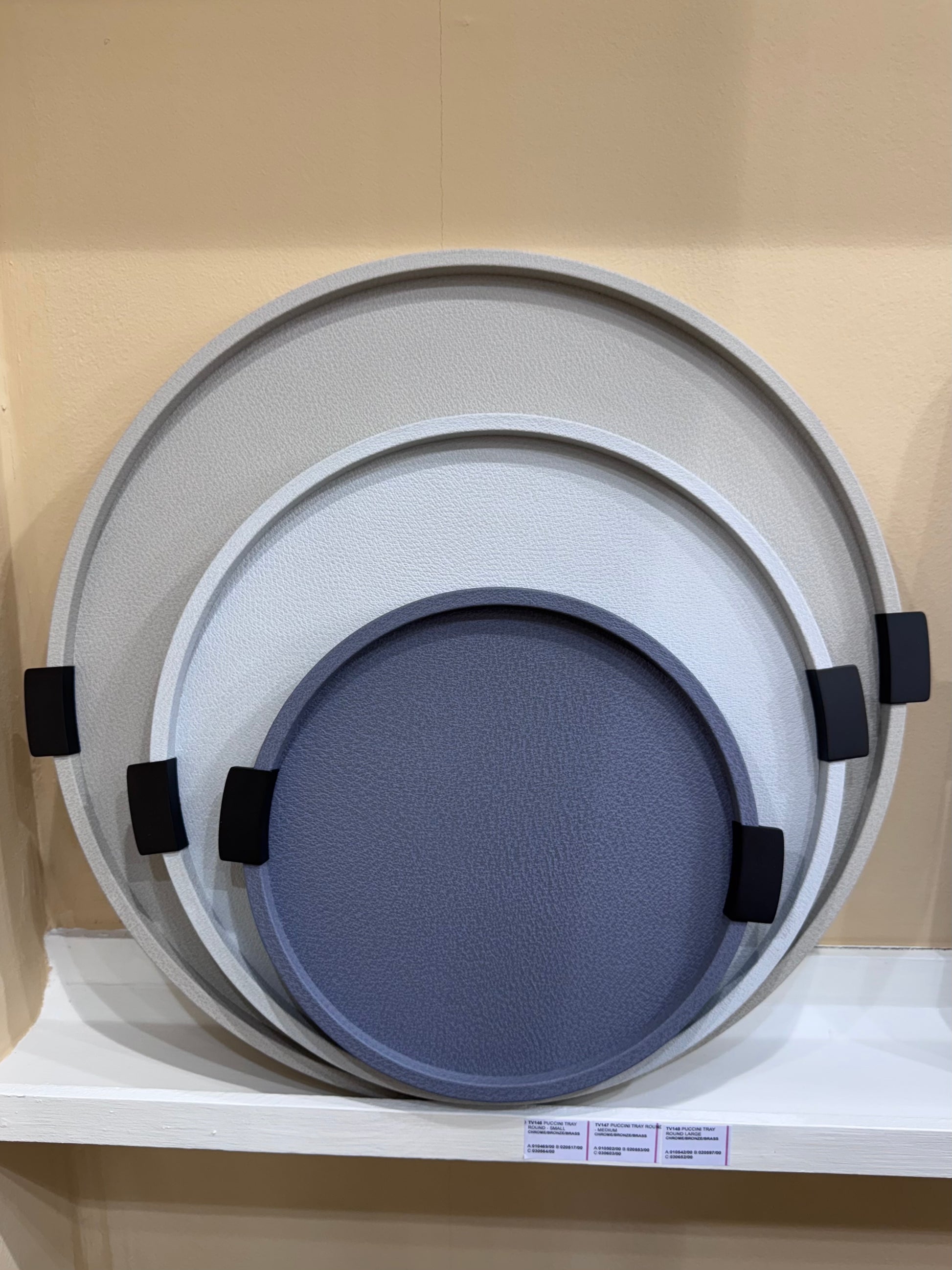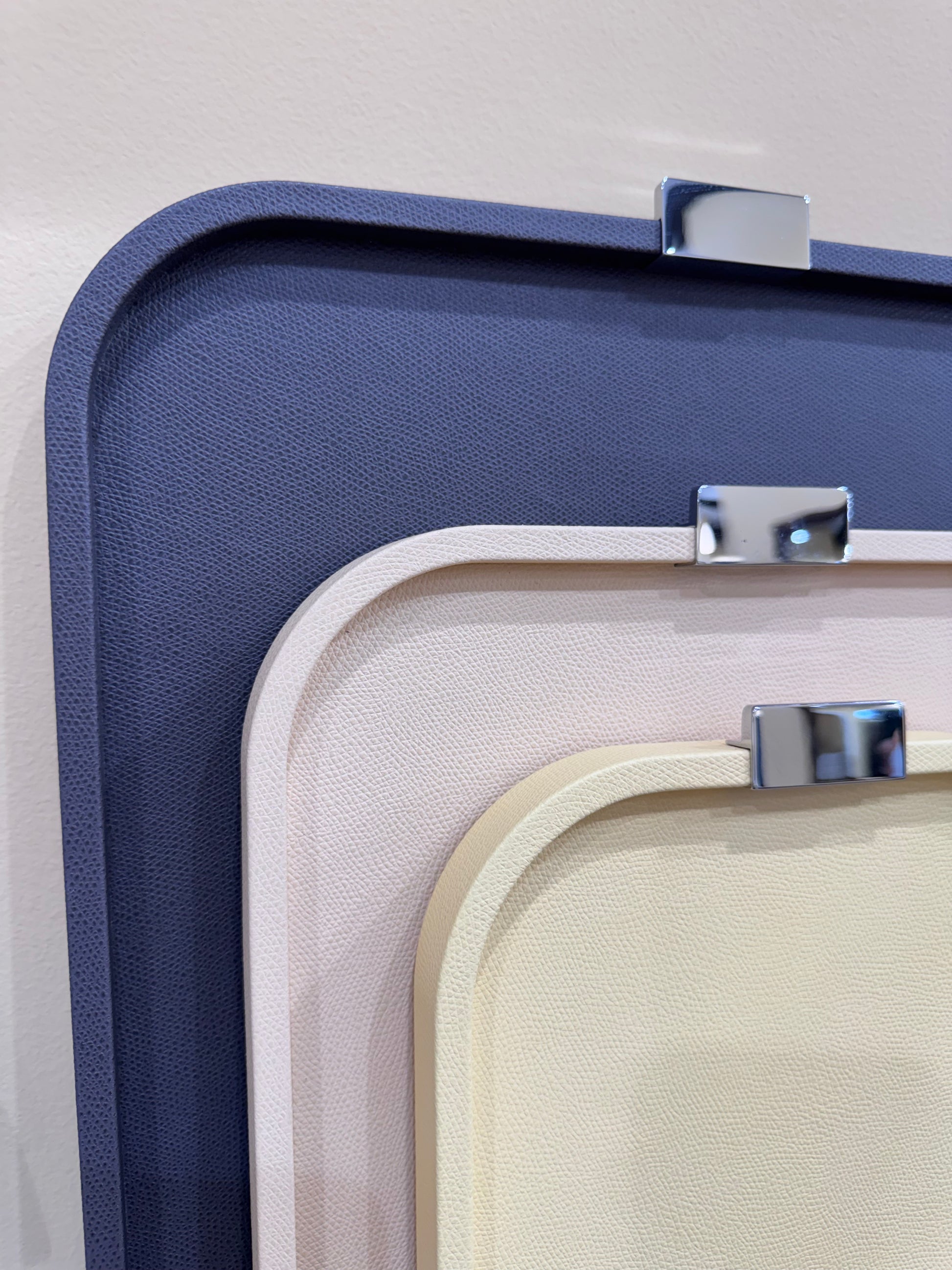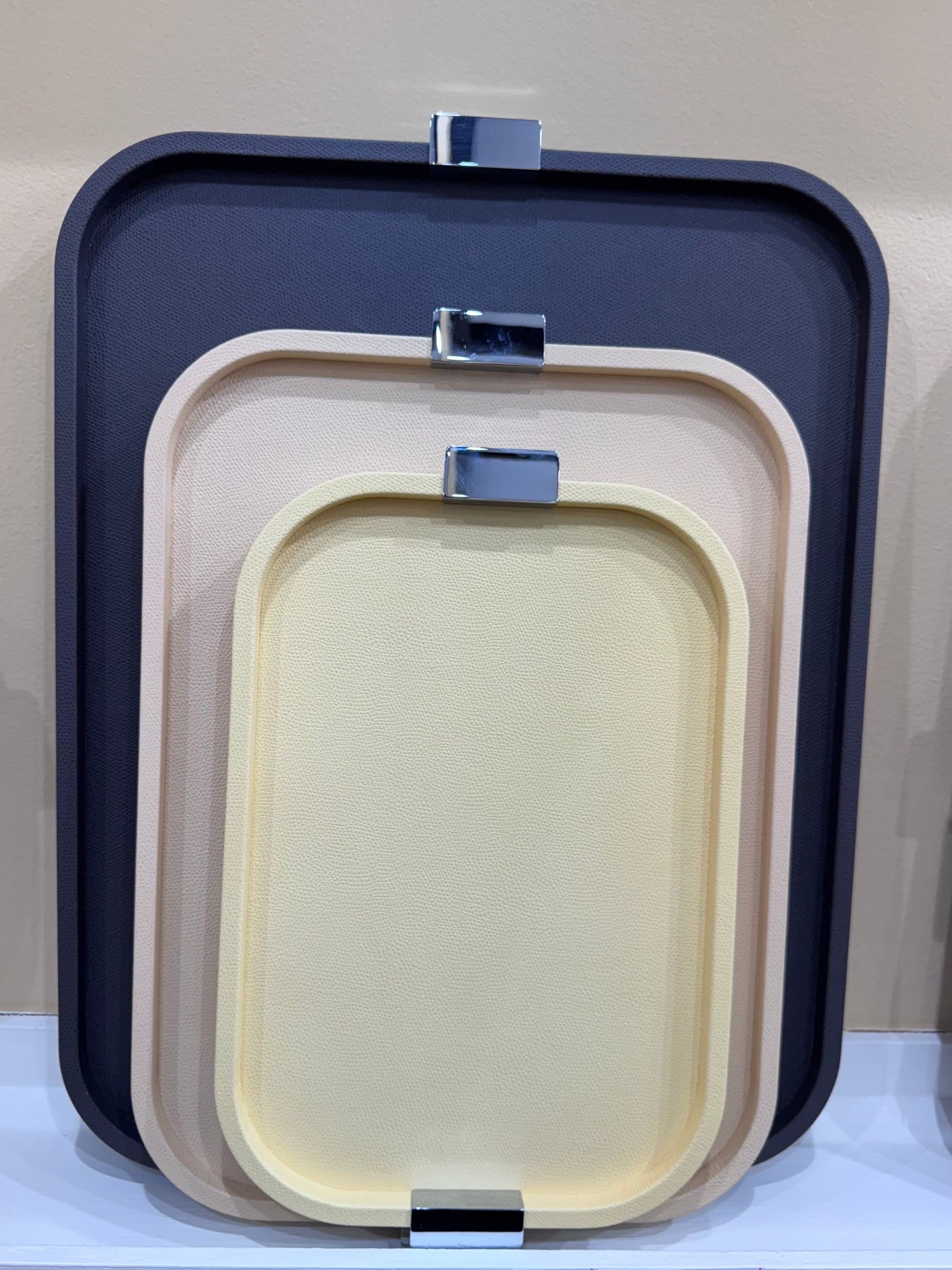 Puccini Tray by Giobagnara combines timeless style and practicality. Its leather-covered wood structure adds a sleek, luxurious touch, while the metal handles—offered in chrome, brass, or bronze—complement a variety of aesthetics. With round, rectangular, and square options, this tray suits both entertaining and everyday use, bringing understated elegance to any setting.