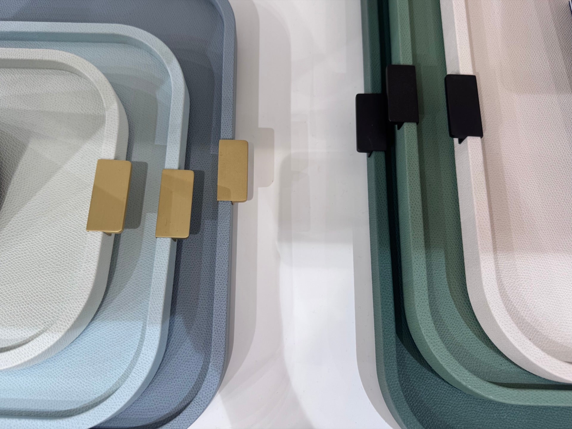• Metal handles in three finishes (chrome, brass, bronze)