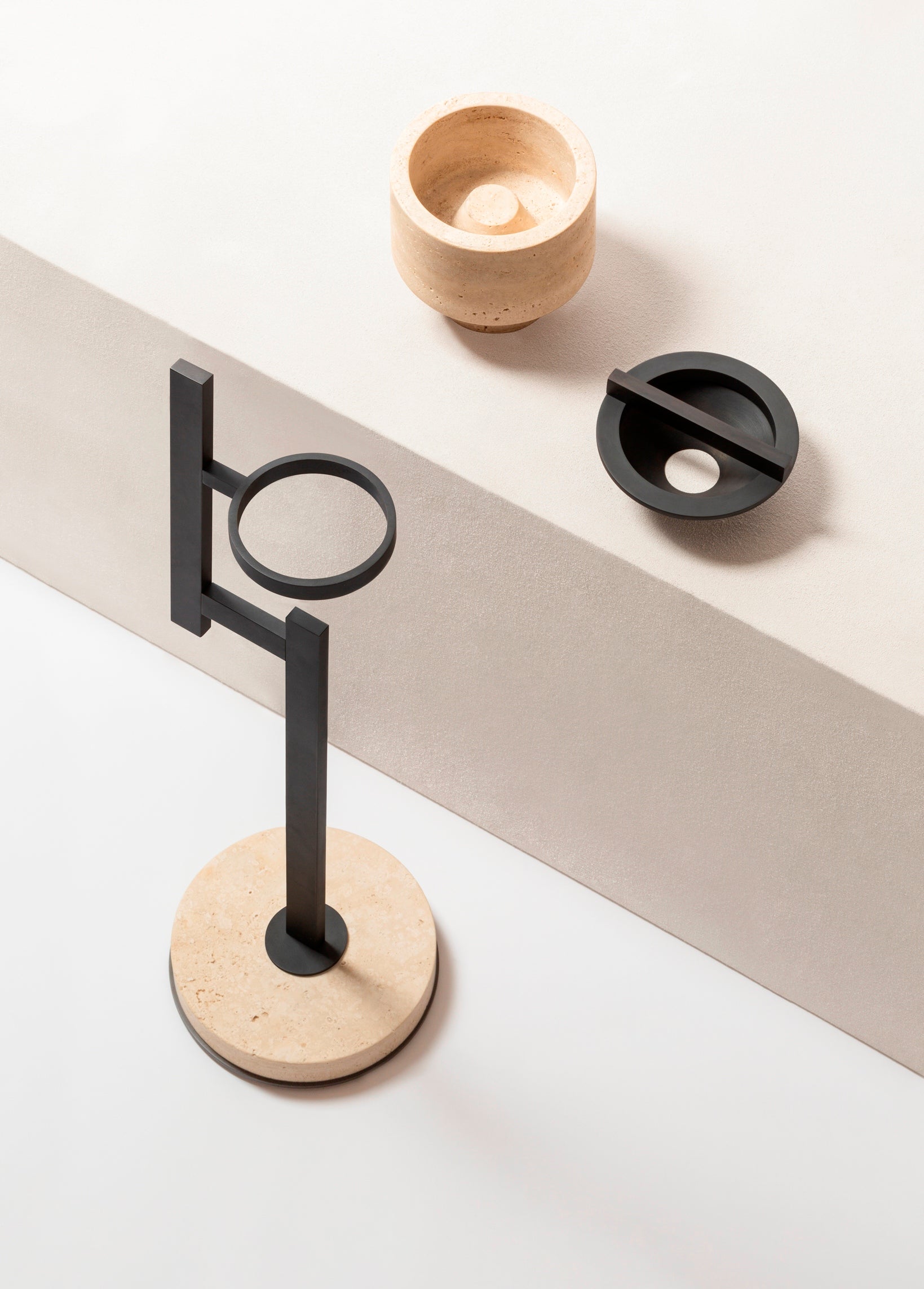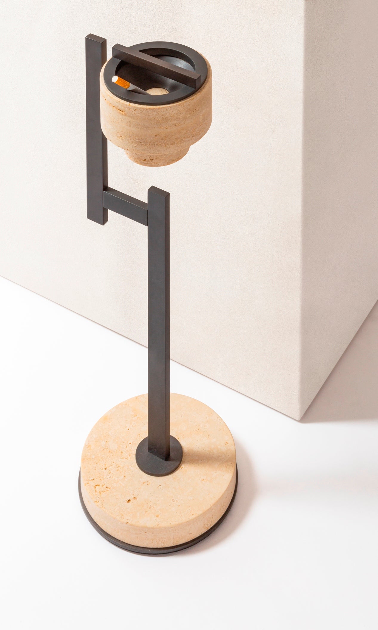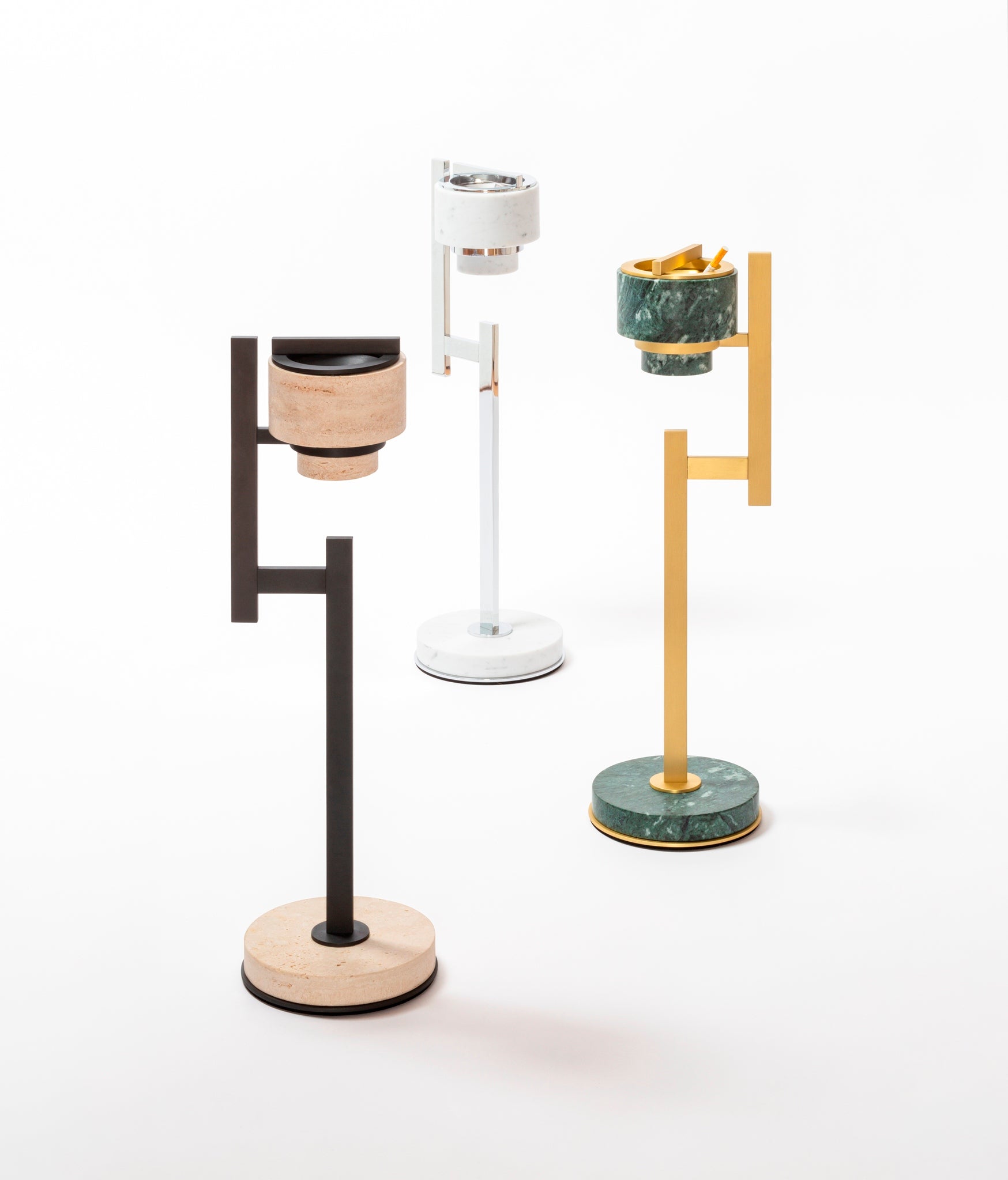 Giobagnara's Rimini Marble Standing Ashtray harmoniously blends metal and marble in a functional yet elegant design. Available in diverse finishes, its eye-catching contrast and sleek lines make it a stylish addition, combining practicality with aesthetic allure.
