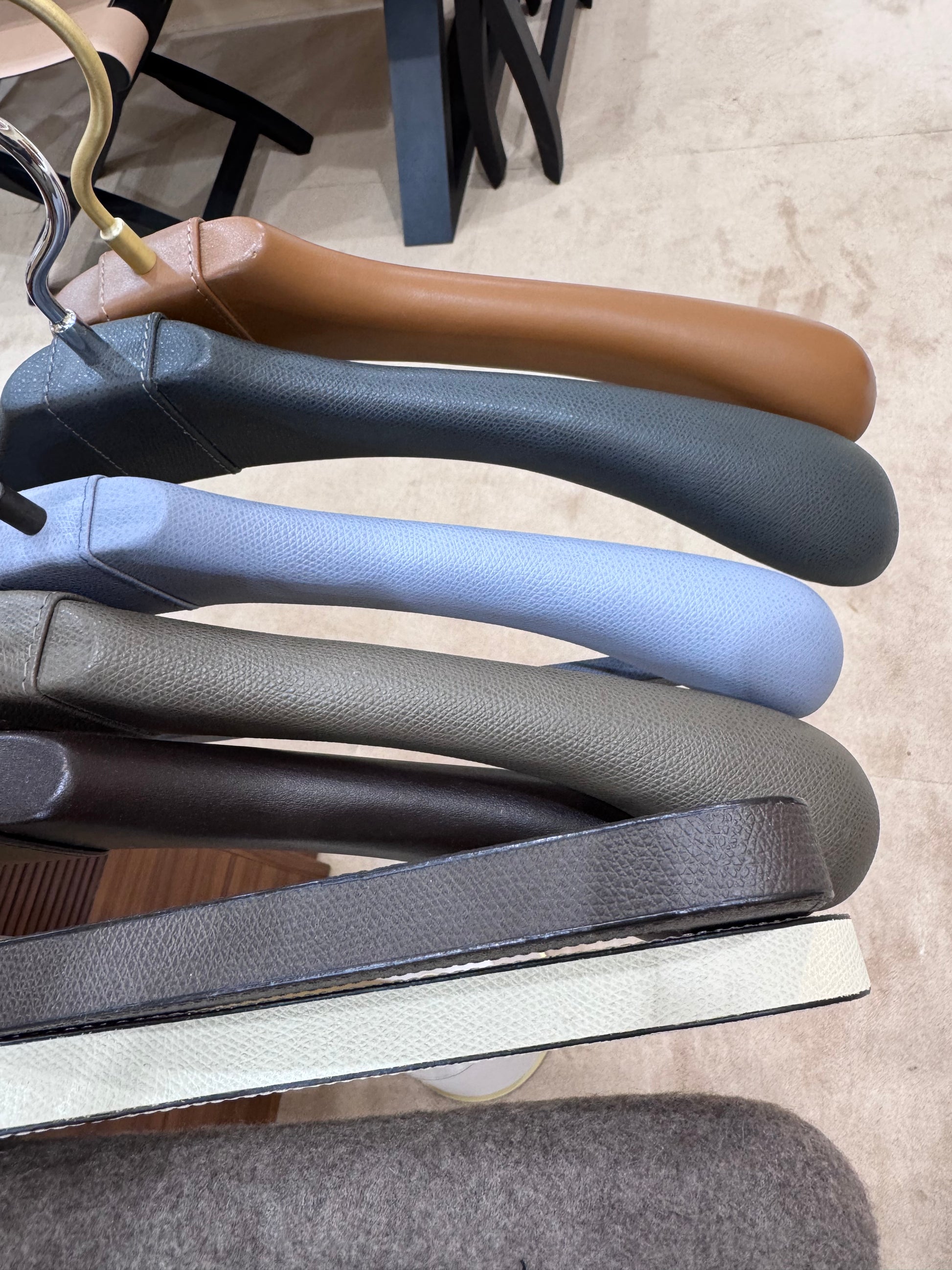 The Hermitage Suit Clothes Hanger by Giobagnara is expertly crafted from leather-covered wood, offering exceptional shoulder support while eliminating "clanking." This hanger is perfect for maintaining your suits in pristine condition during travel, whether on airplanes or yachts.