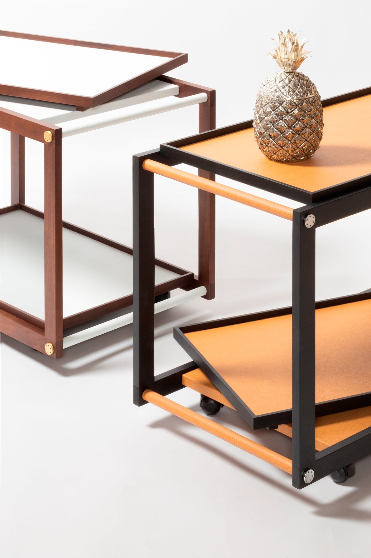 GIOBAGNARA – Jeremy Wenge Wood Serving Trolley with Leather and Metal Inserts