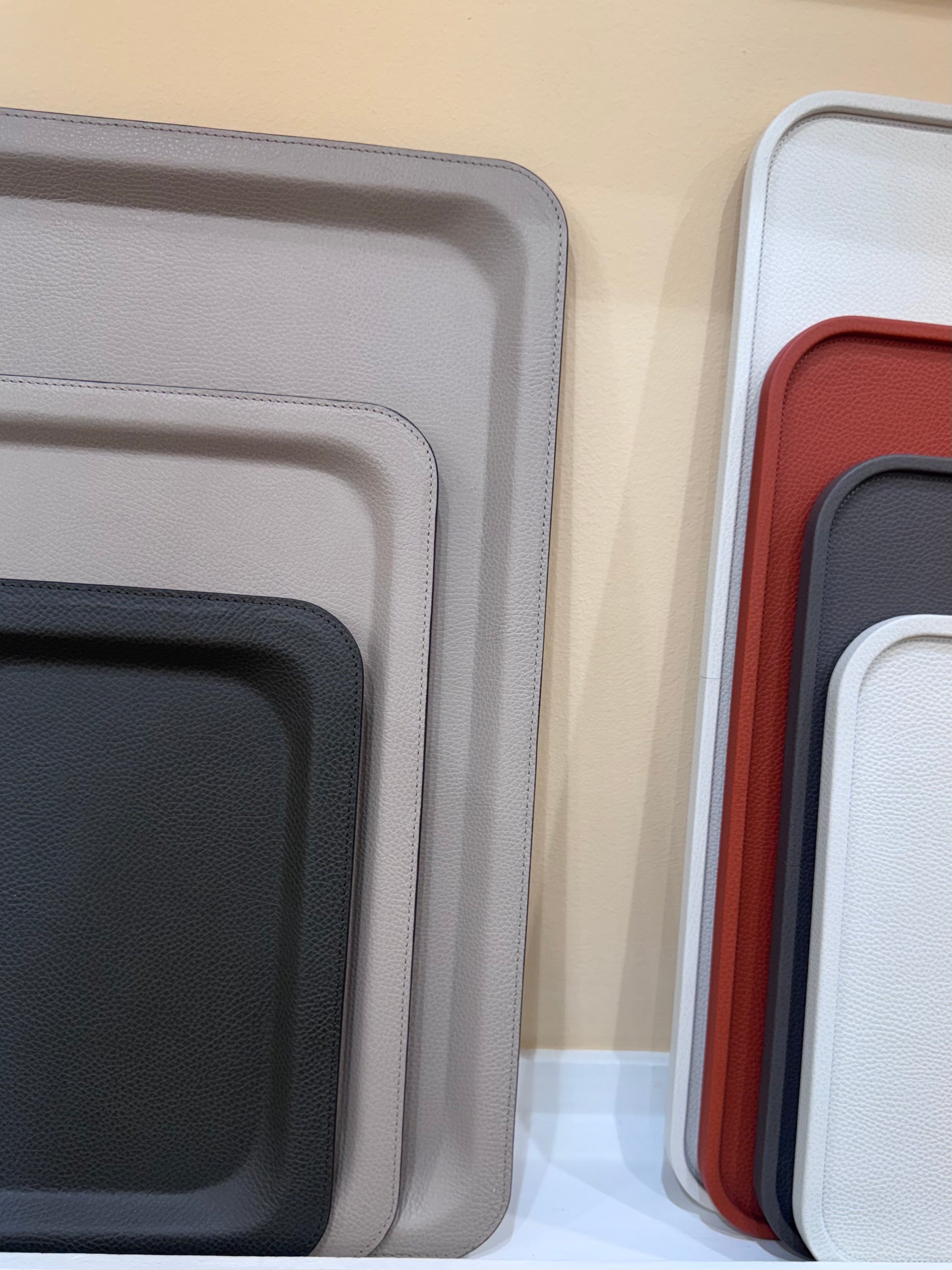 The Miramar Tray by Giobagnara is crafted with a leather-covered laminated synthetic structure, offering both durability and elegance. Available in round, oval, and rectangular shapes, this versatile tray adds a touch of sophistication to any serving or display setting.