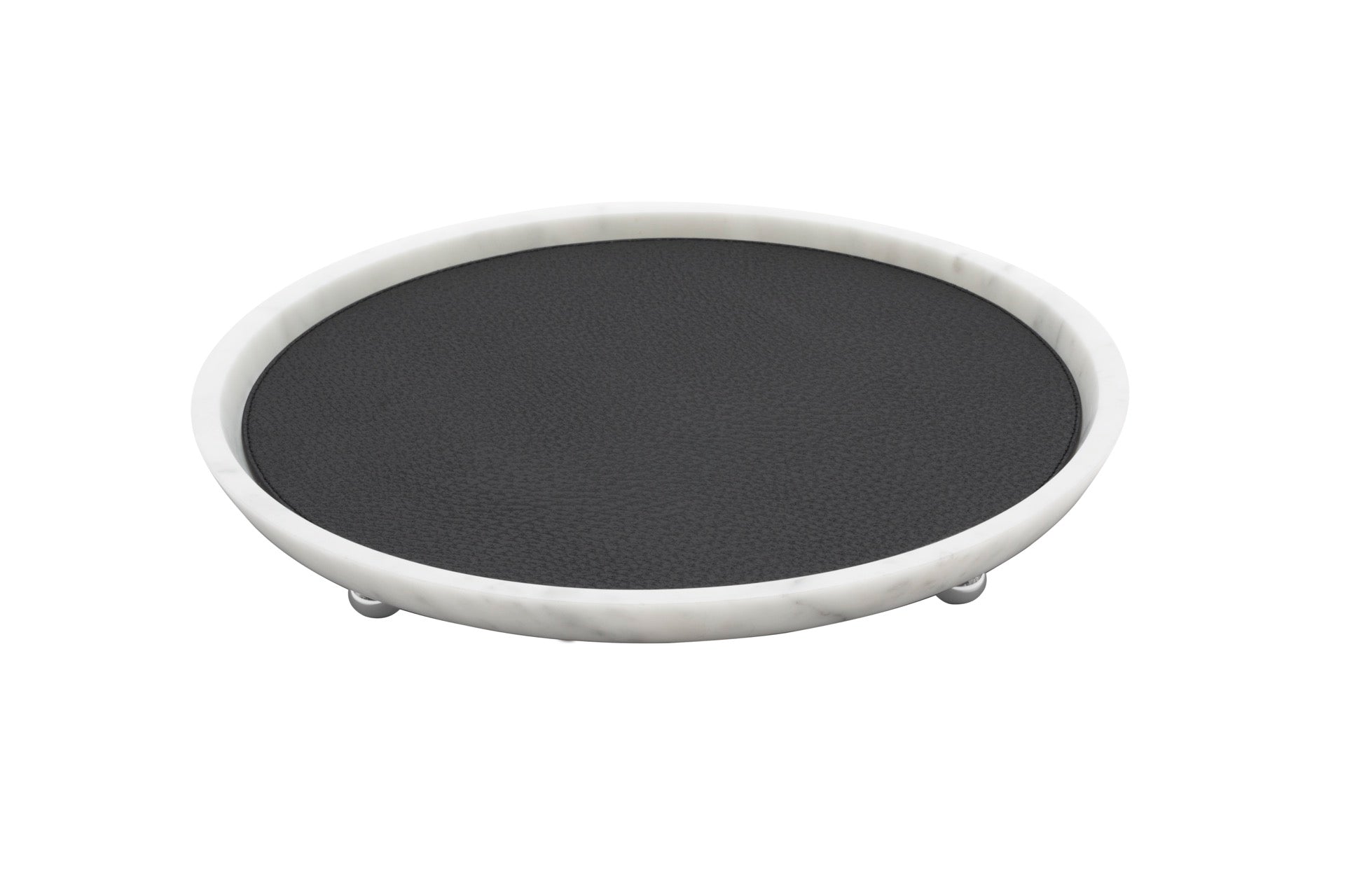 Monza Marble Valet Tray, Round L with Removable Leather Placemat