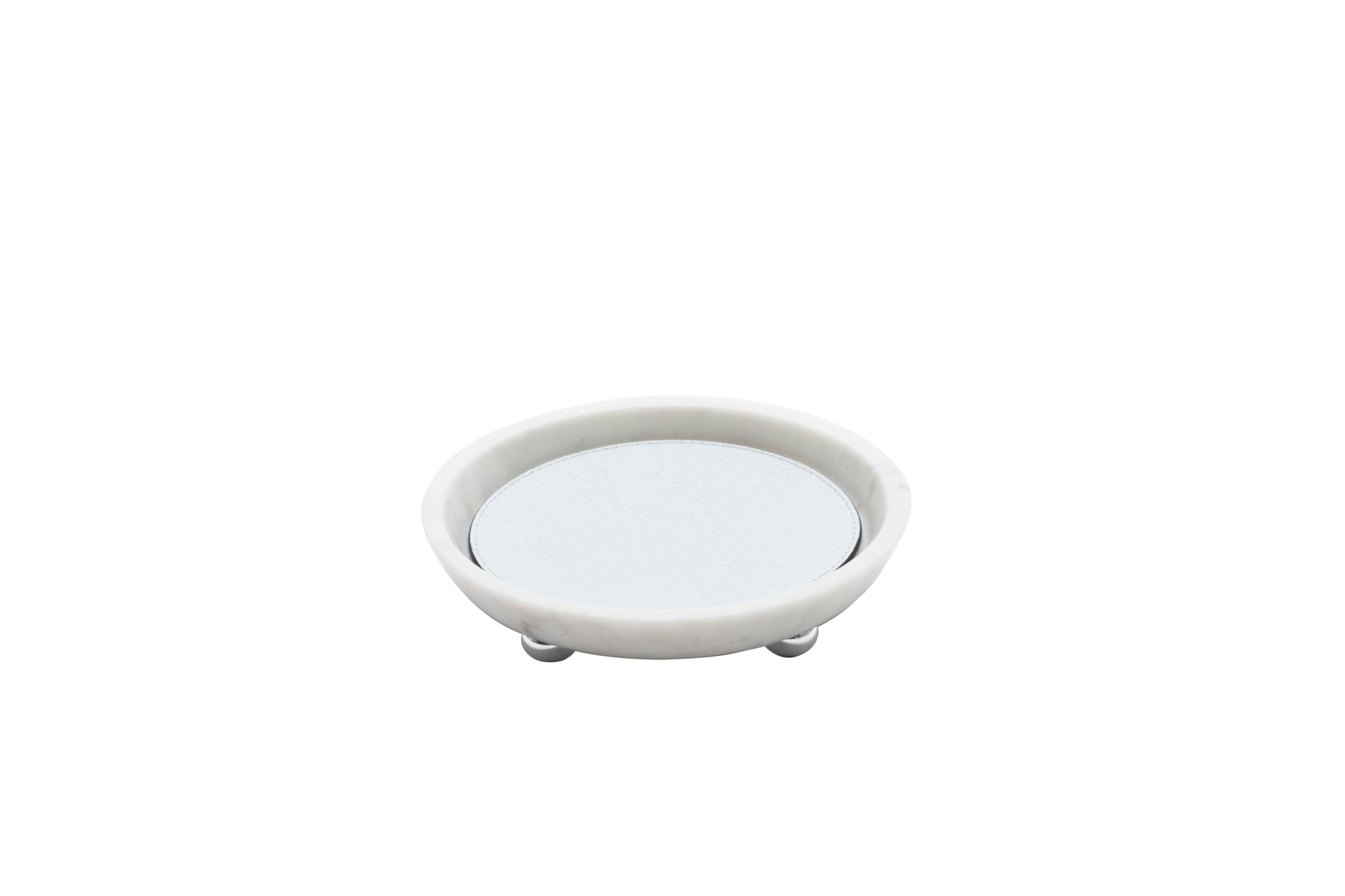 Monza Marble Valet Tray, Round Mini with Removable Leather Placemat