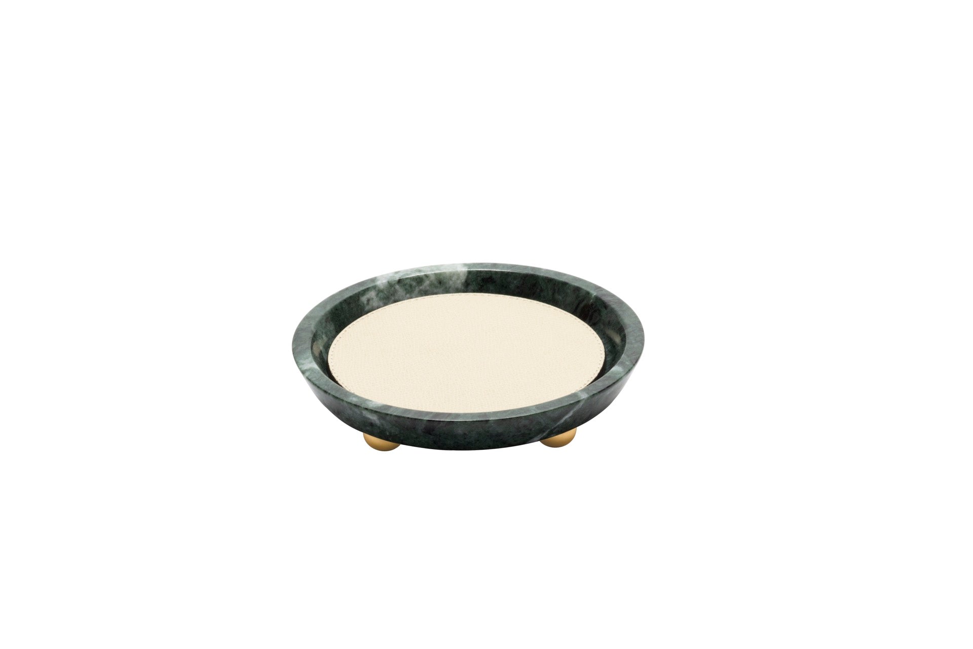 GIOBAGNARA – Monza Marble Valet Tray, Round Mini with Removable Leather Placemat