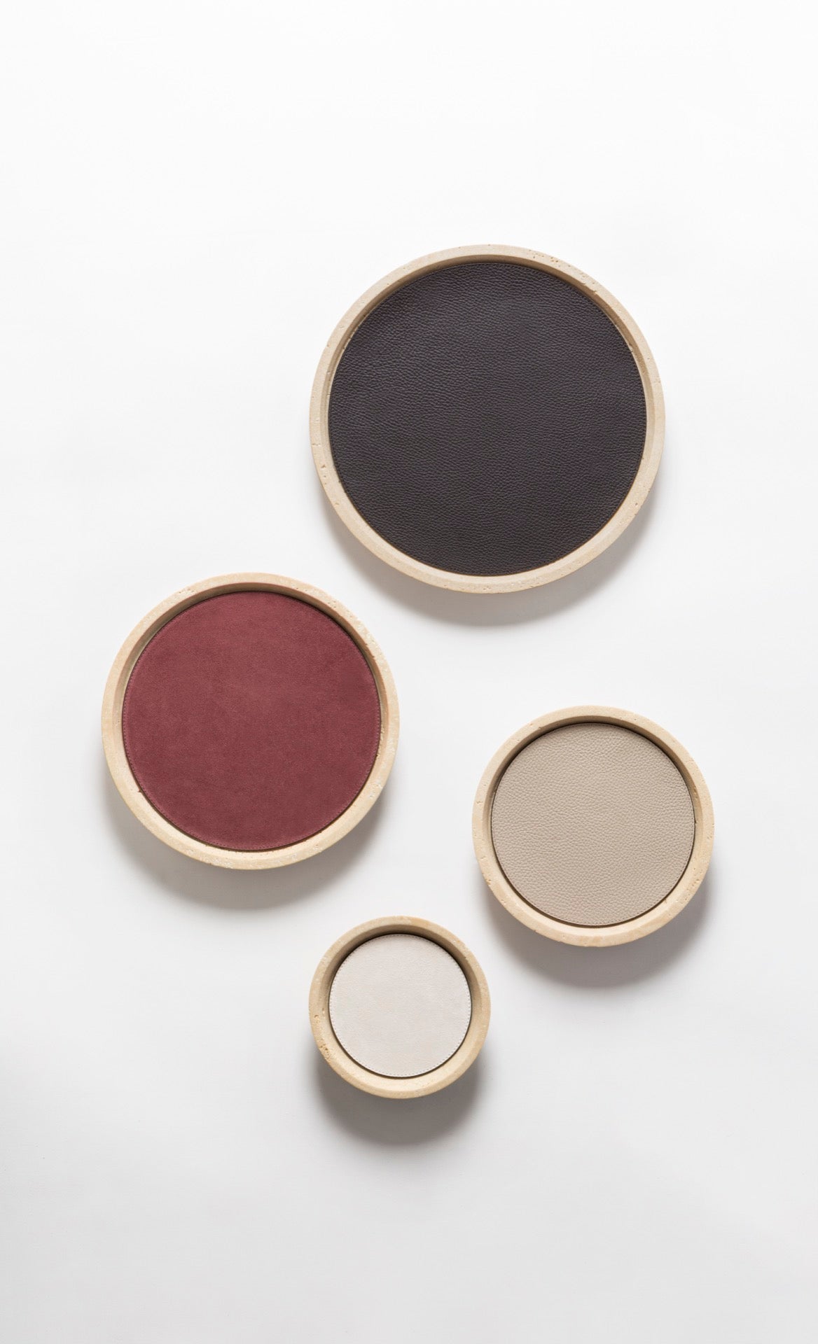 The Monza Leather & Marble Valet Tray by Giobagnara combines sculptural marble craftsmanship with a removable leather mat for tactile contrast. Available in both round and rectangular versions, it offers a timeless balance of weight and precision.