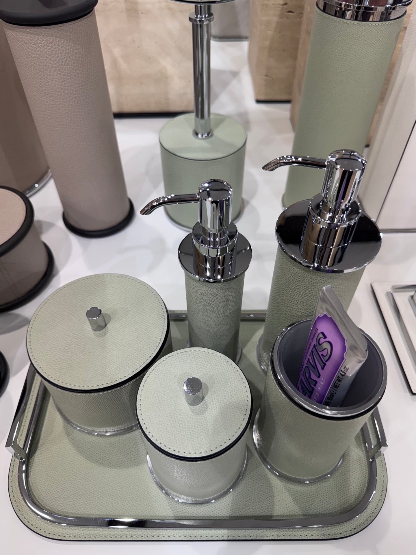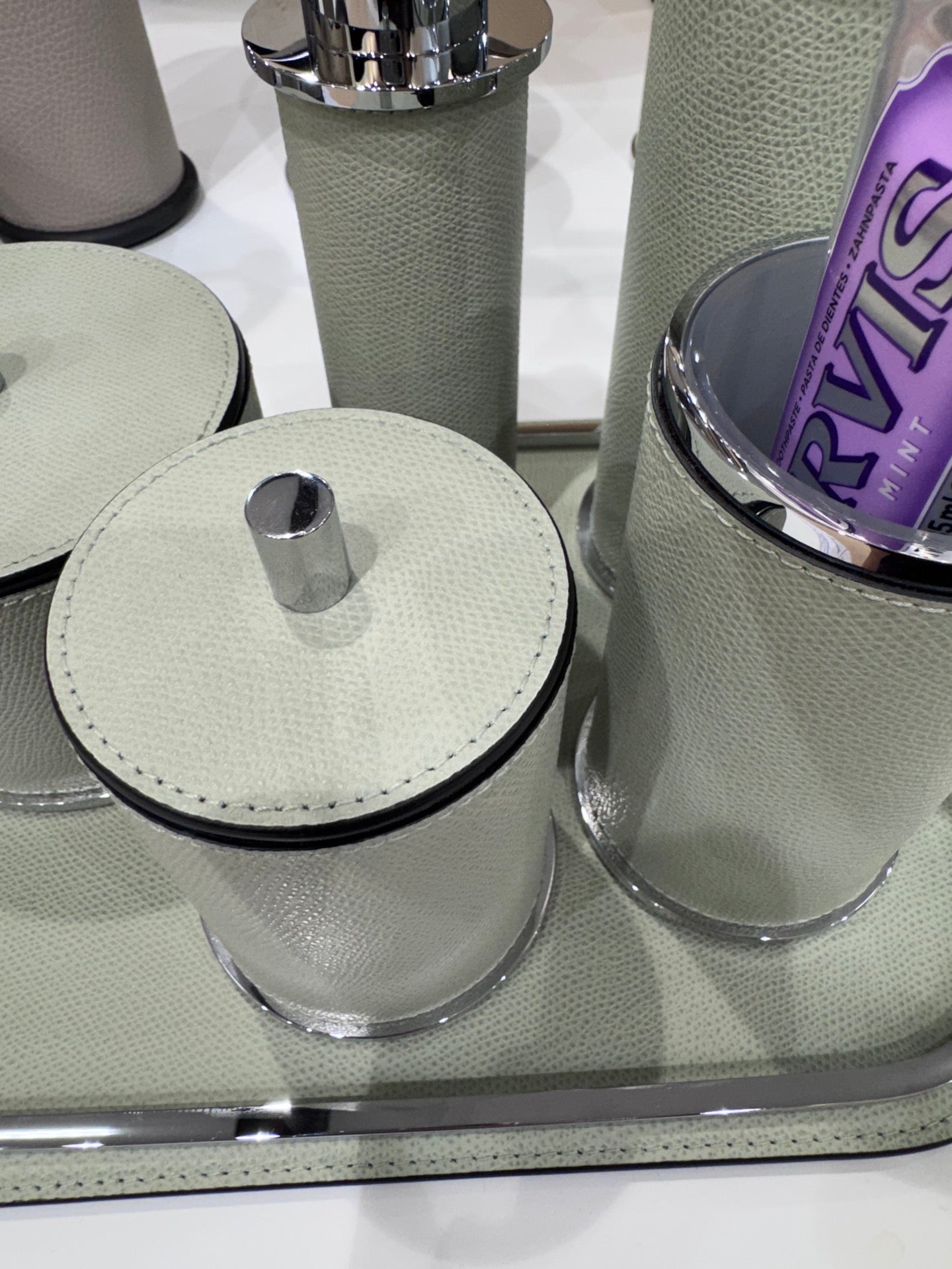 collection: Positano Leather-Covered Bathroom Set | Giobagnara