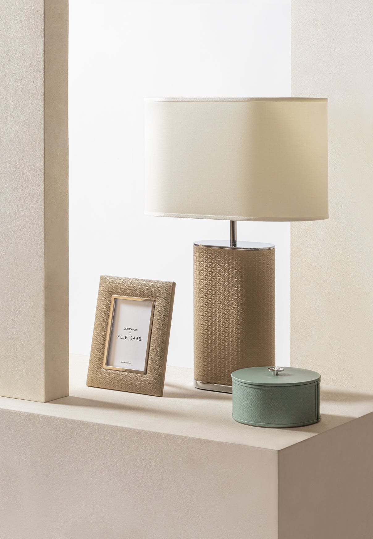 Enhance your decor with the sophisticated charm of the Monogram Trinket Box Round by Giobagnara x Elie Saab.