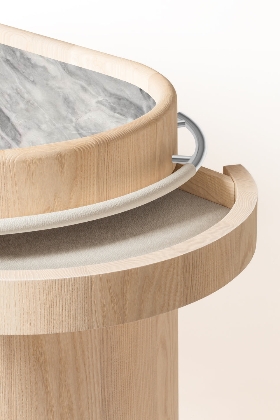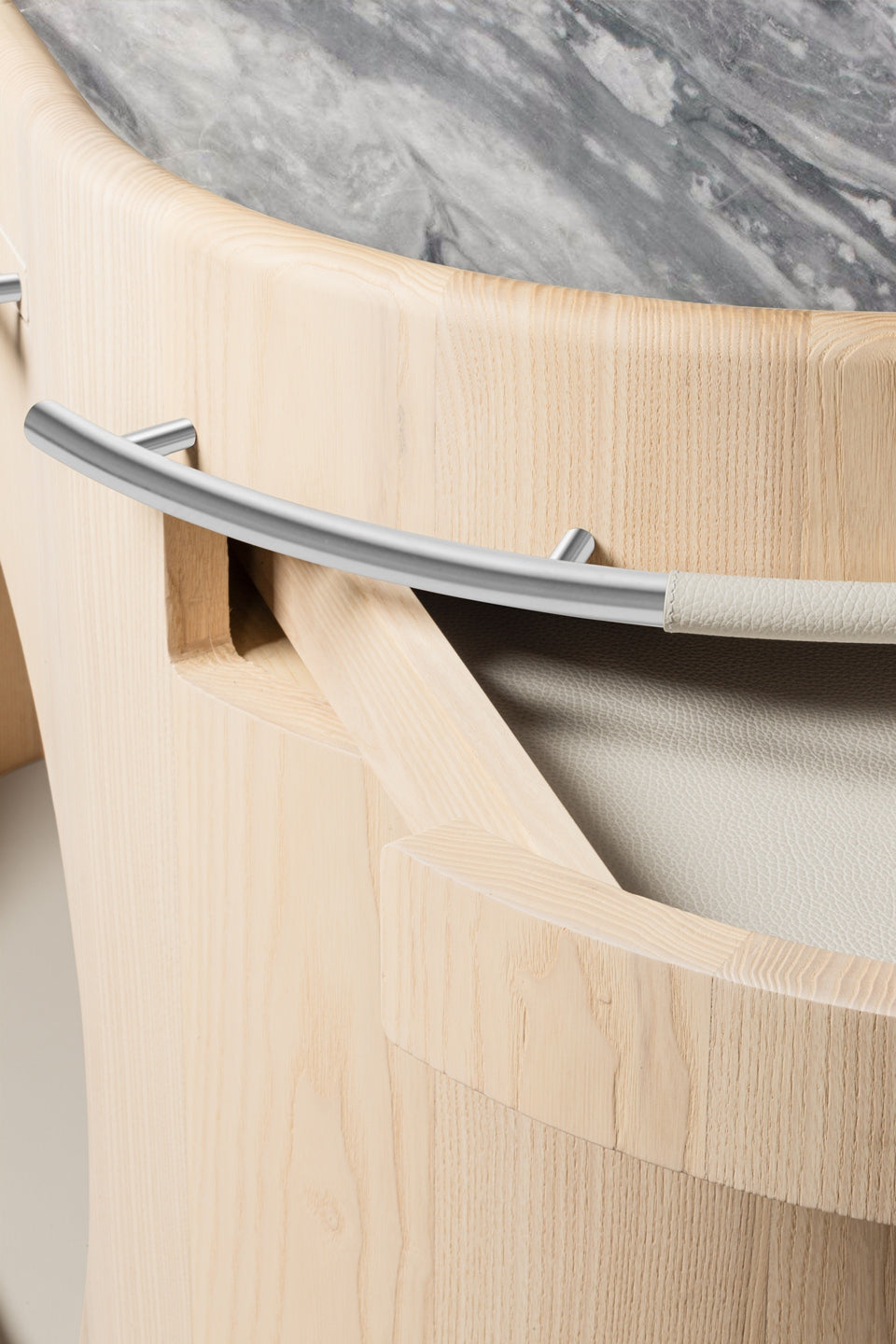 - Elegant combination of wood, leather, and marble