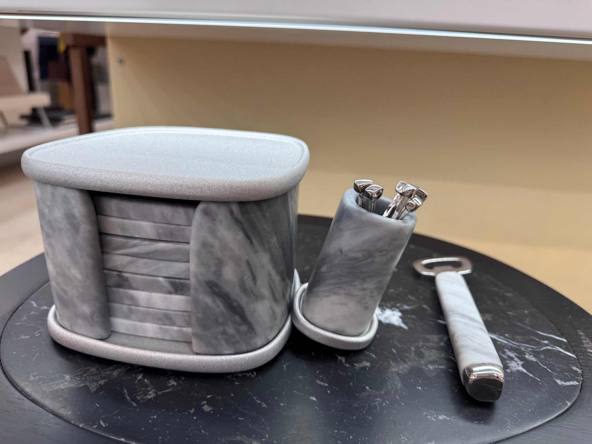 GIOBAGNARA – x Kelly Wearstler Maris Marble Coaster Holder with Aluminium Accents and 8 Marble Coasters