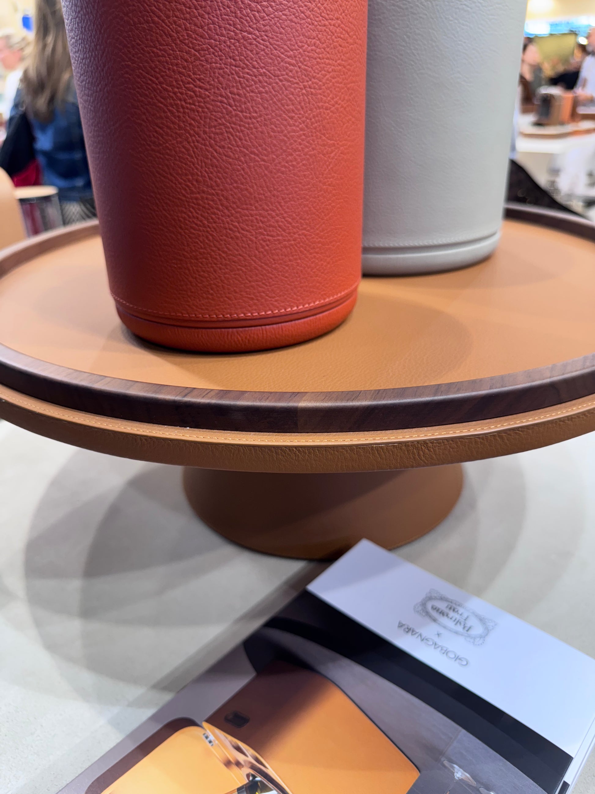The Rotating Raised Tray by Giobagnara x Poltrona Frau blends Italian craftsmanship with functional elegance. Clad in signature Pelle Frau® leather and framed in walnut wood, this piece is designed to serve with both beauty and precision. Whether used for entertaining or as a refined centerpiece, it brings elevated motion to everyday moments.