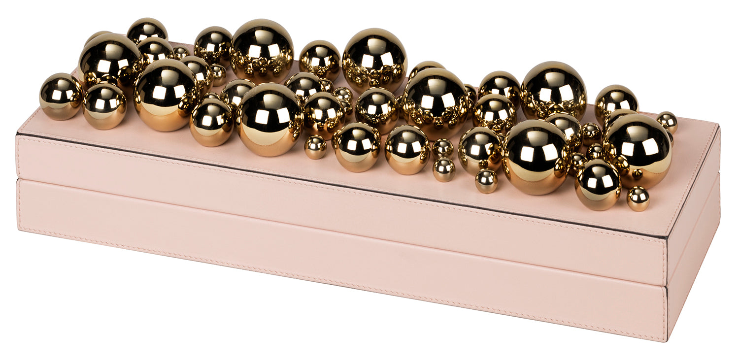 GIOBAGNARA – x Stephane Parmentier Champagne Leather-Covered Mixed Spheres Trinket Box, Rectangular Low