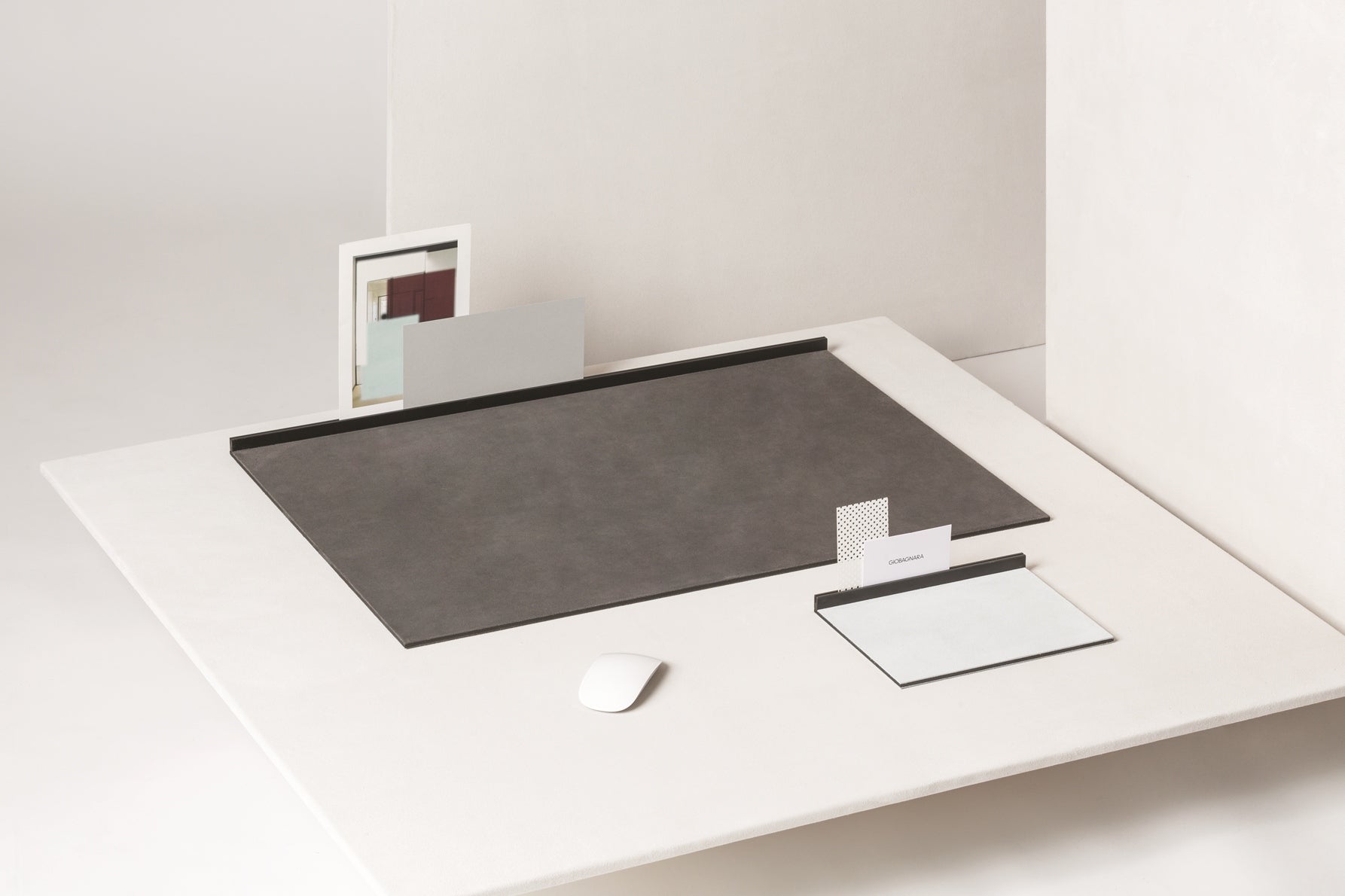 Upgrade your desk organization with the Suede Leather & Metal Mouse Pad Card Holder from the Malaparte Collection.